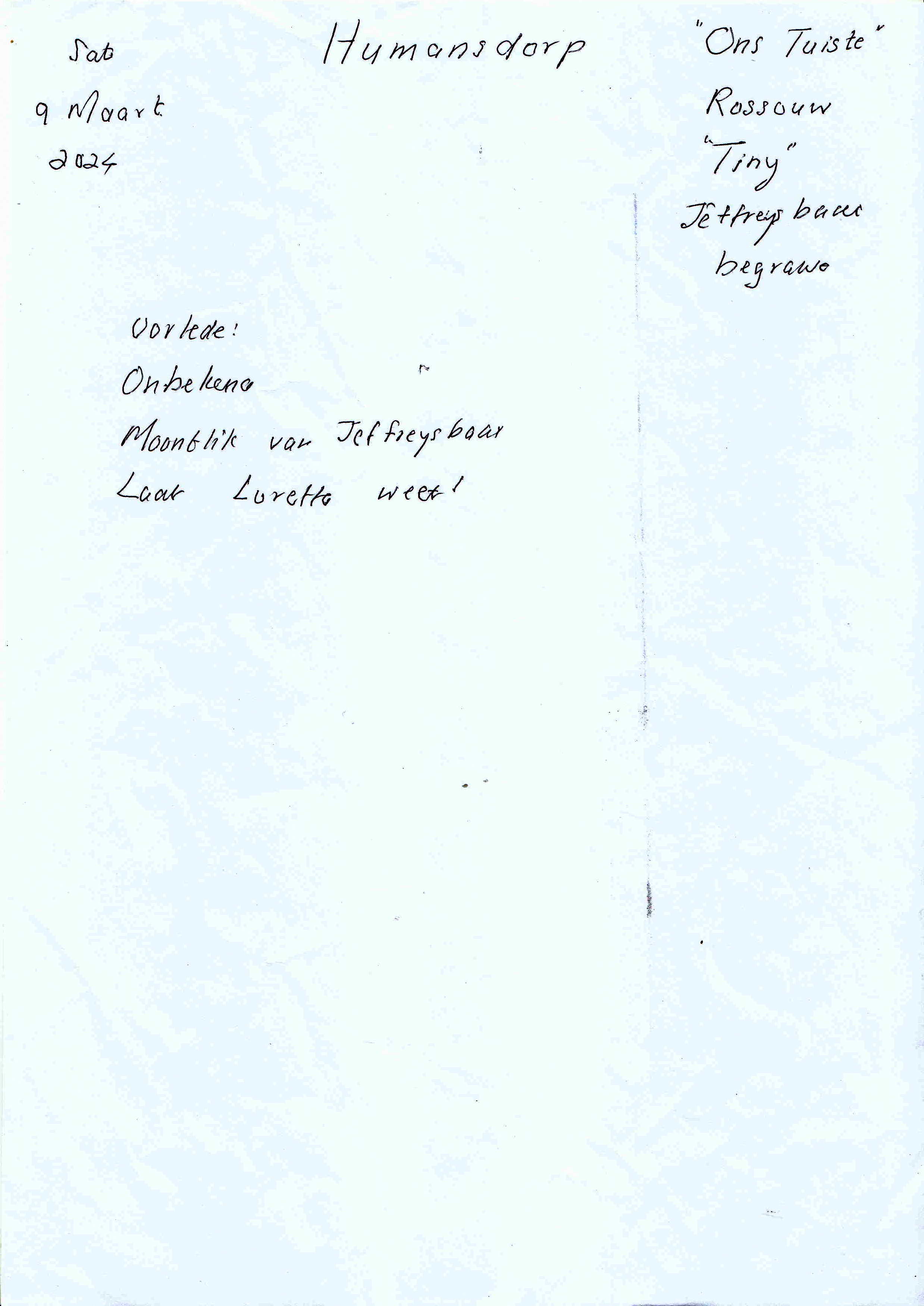 Funeral Programs / Begrafnisbriewe