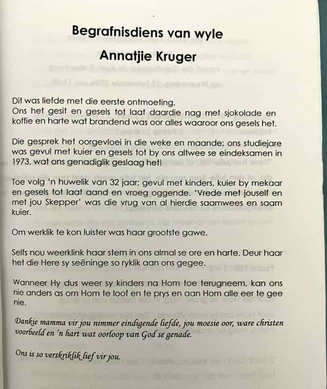 Funeral Programs / Begrafnisbriewe