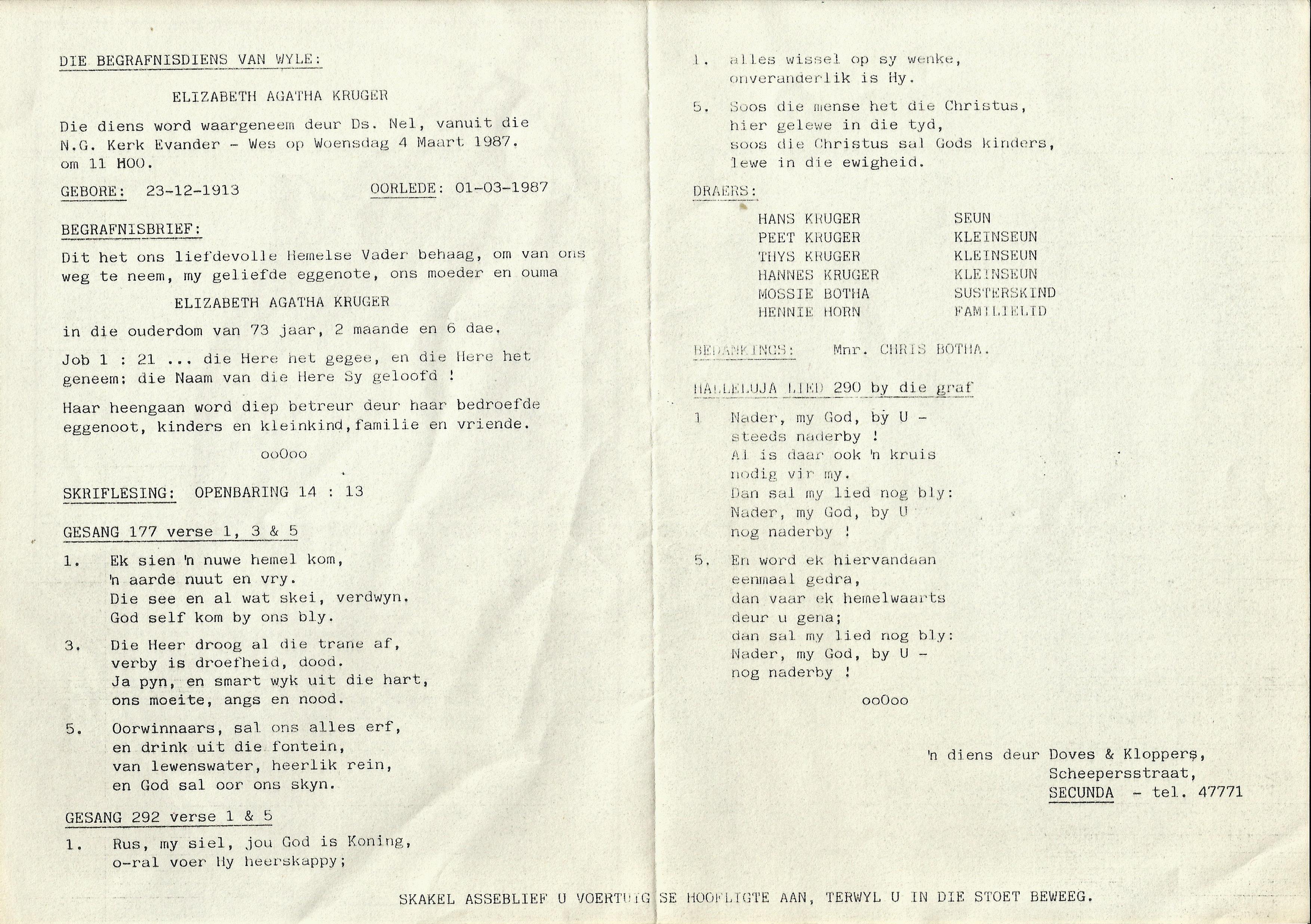 Funeral Programs / Begrafnisbriewe