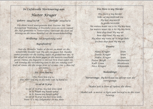 Funeral Programs / Begrafnisbriewe