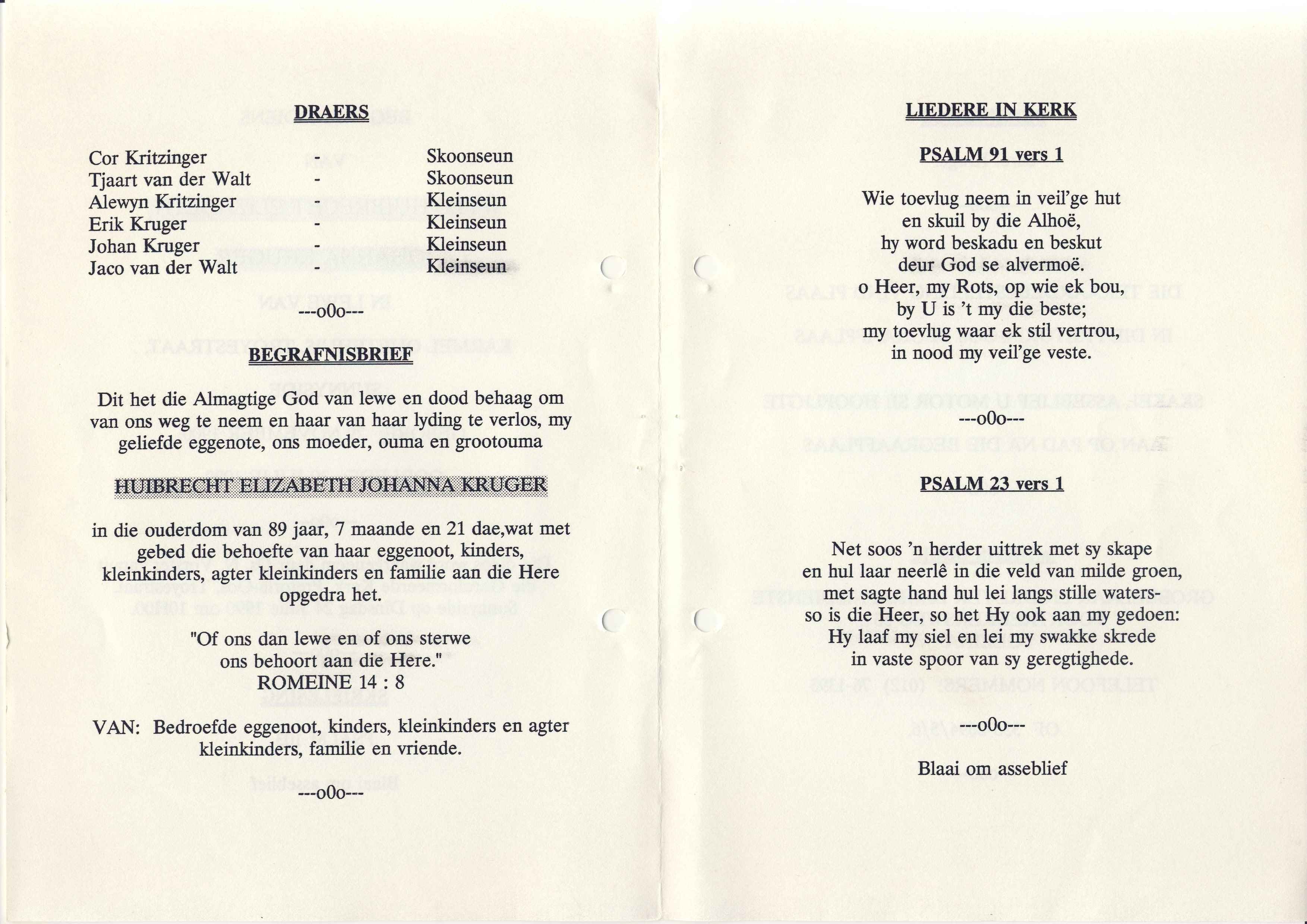 Funeral Programs / Begrafnisbriewe