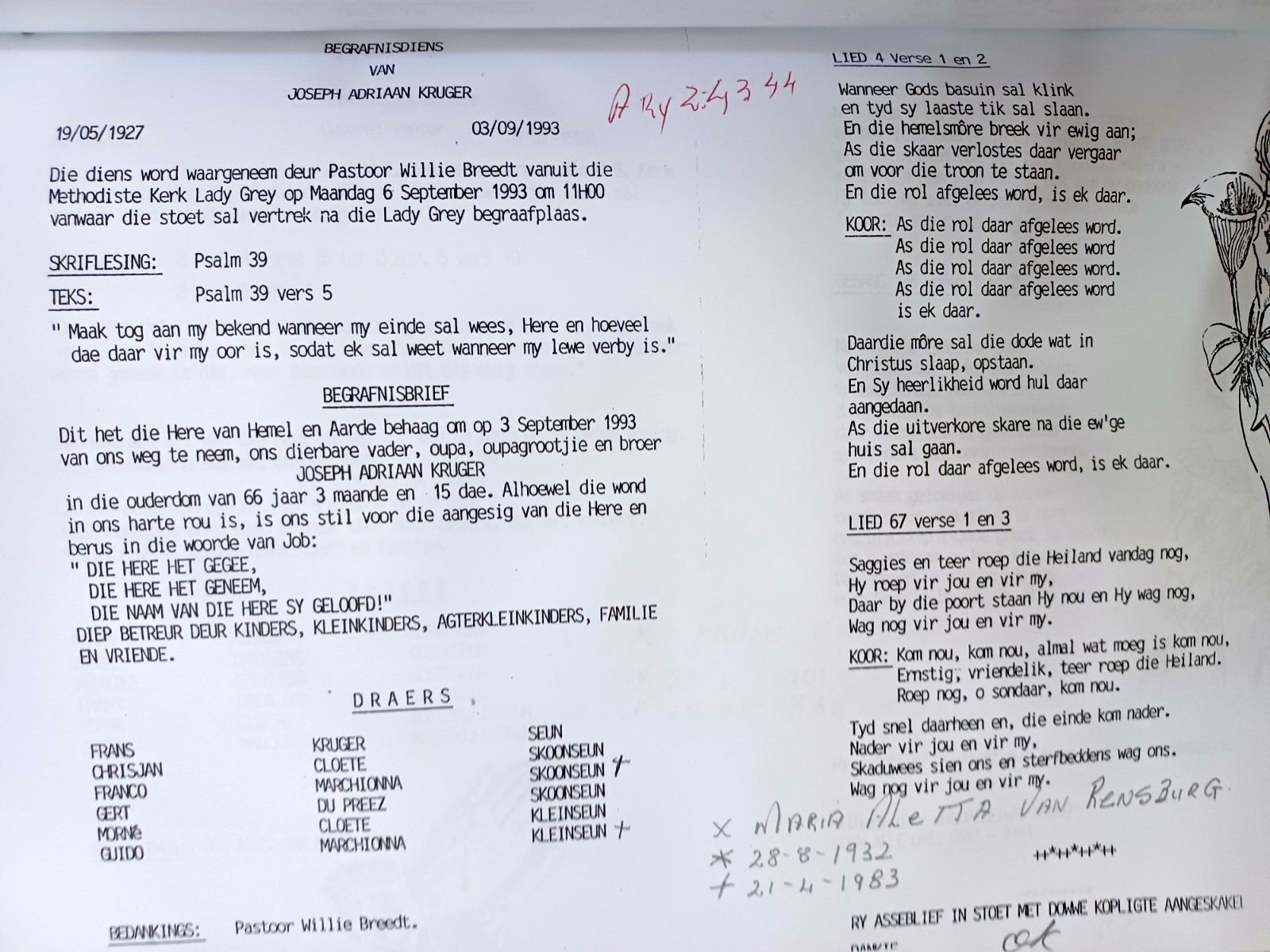 Funeral Programs / Begrafnisbriewe