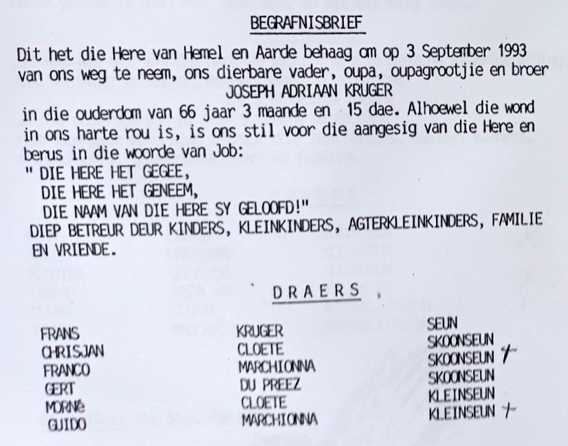 Funeral Programs / Begrafnisbriewe