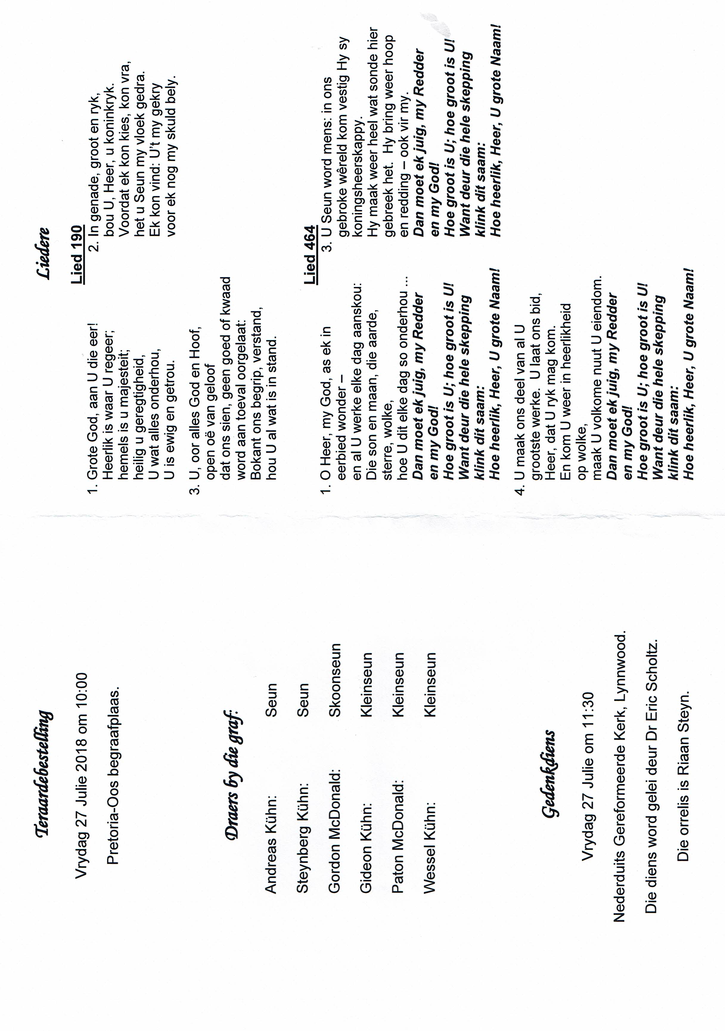 Funeral Programs / Begrafnisbriewe