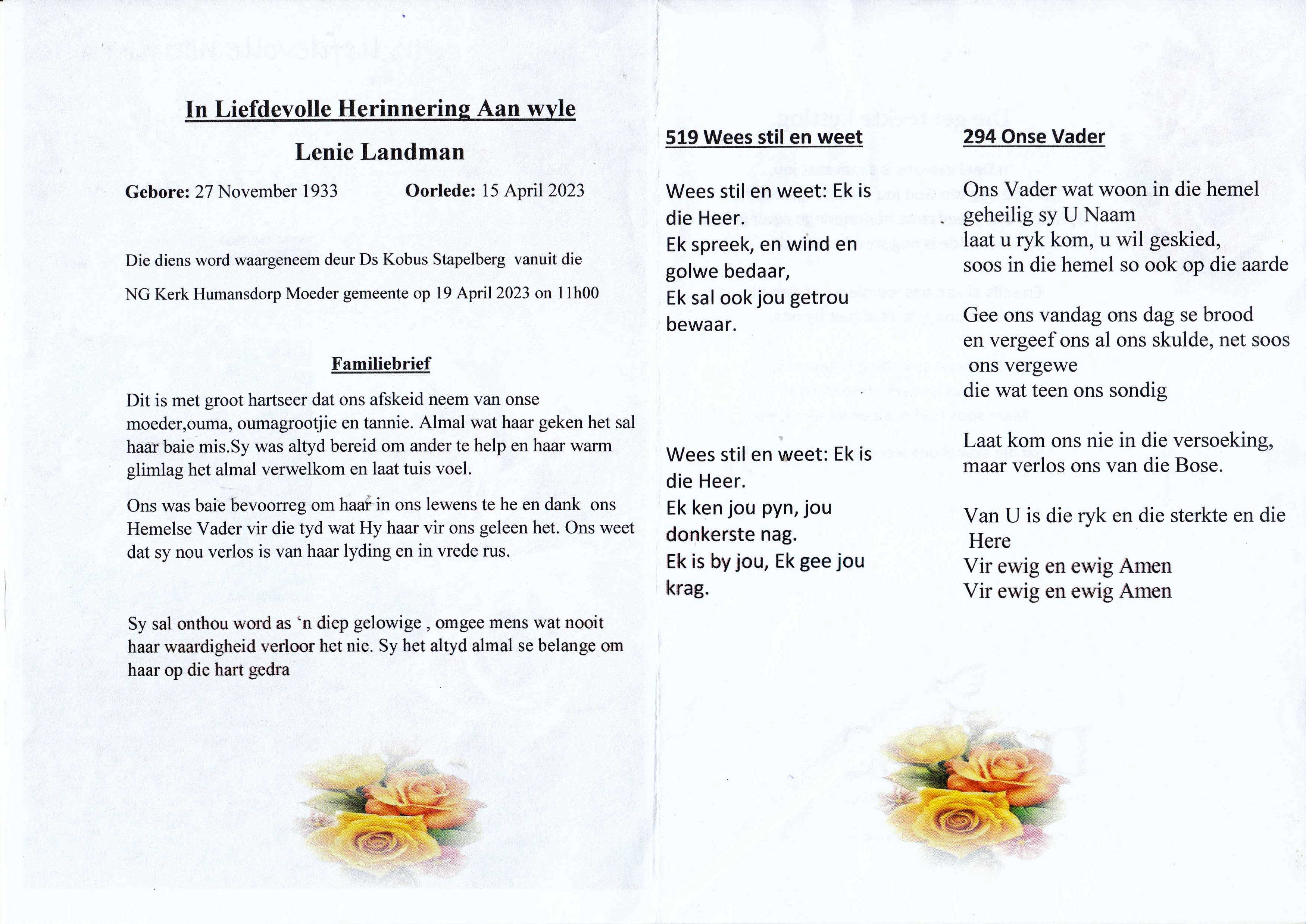 Funeral Programs / Begrafnisbriewe