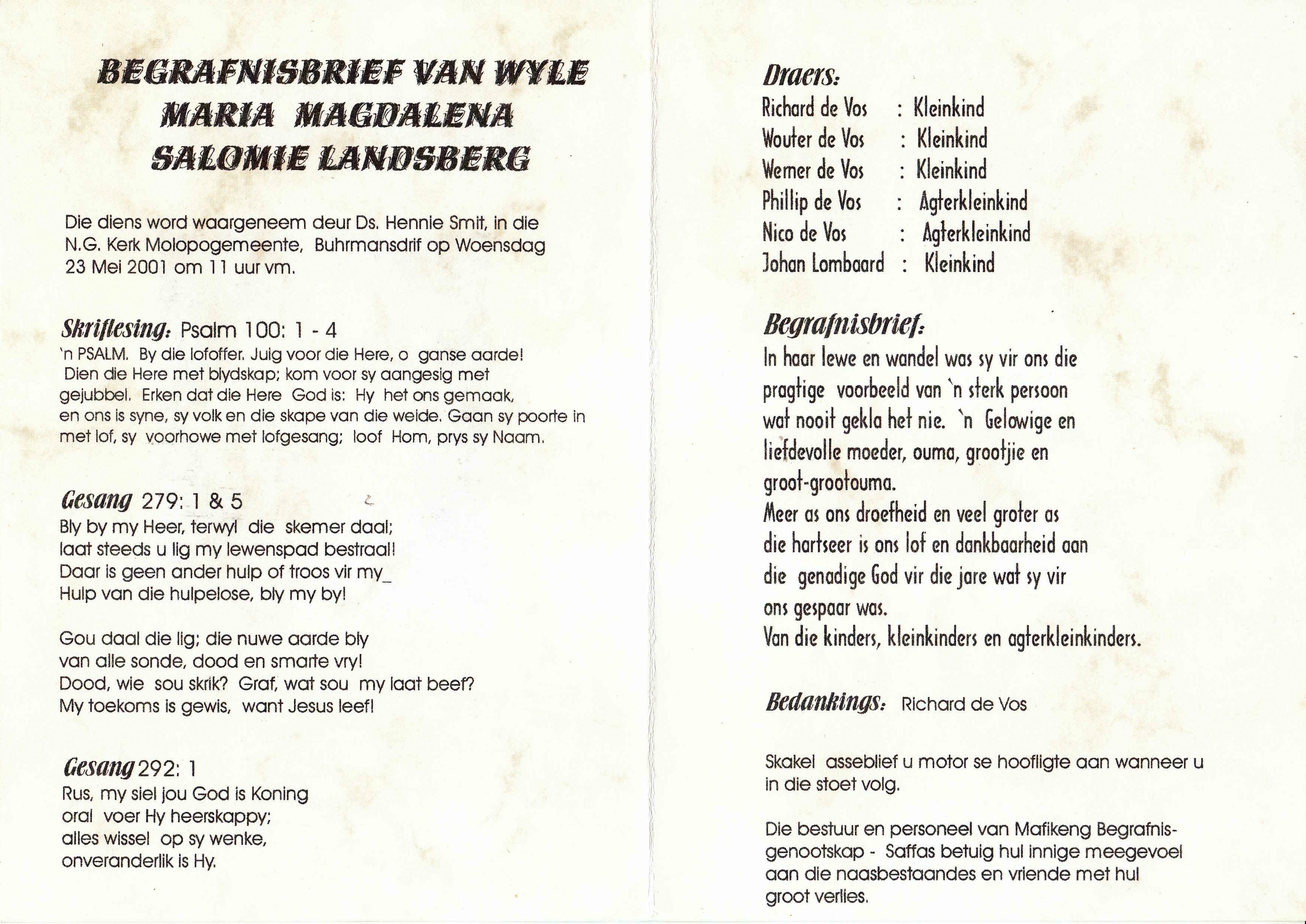 Funeral Programs / Begrafnisbriewe