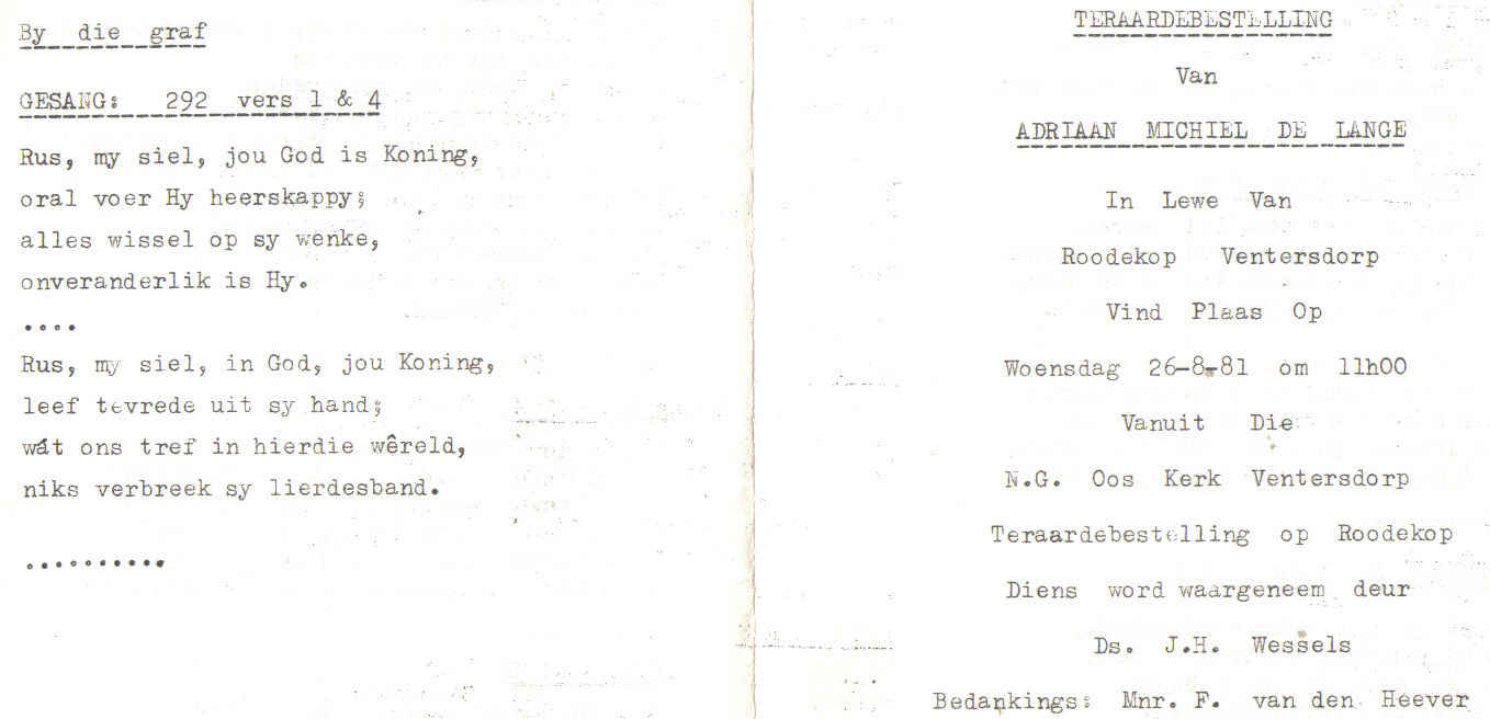 Funeral Programs / Begrafnisbriewe