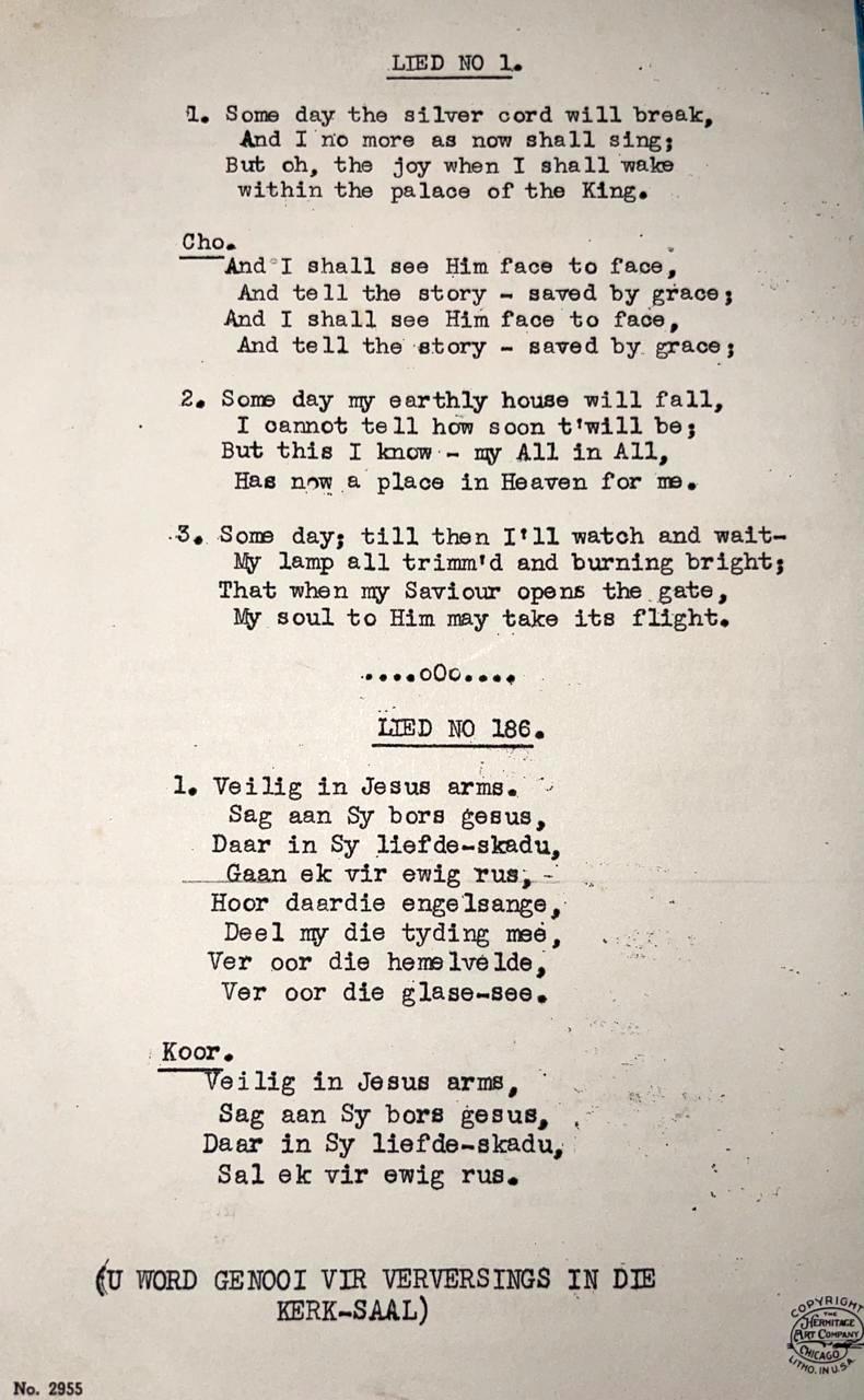 Funeral Programs / Begrafnisbriewe