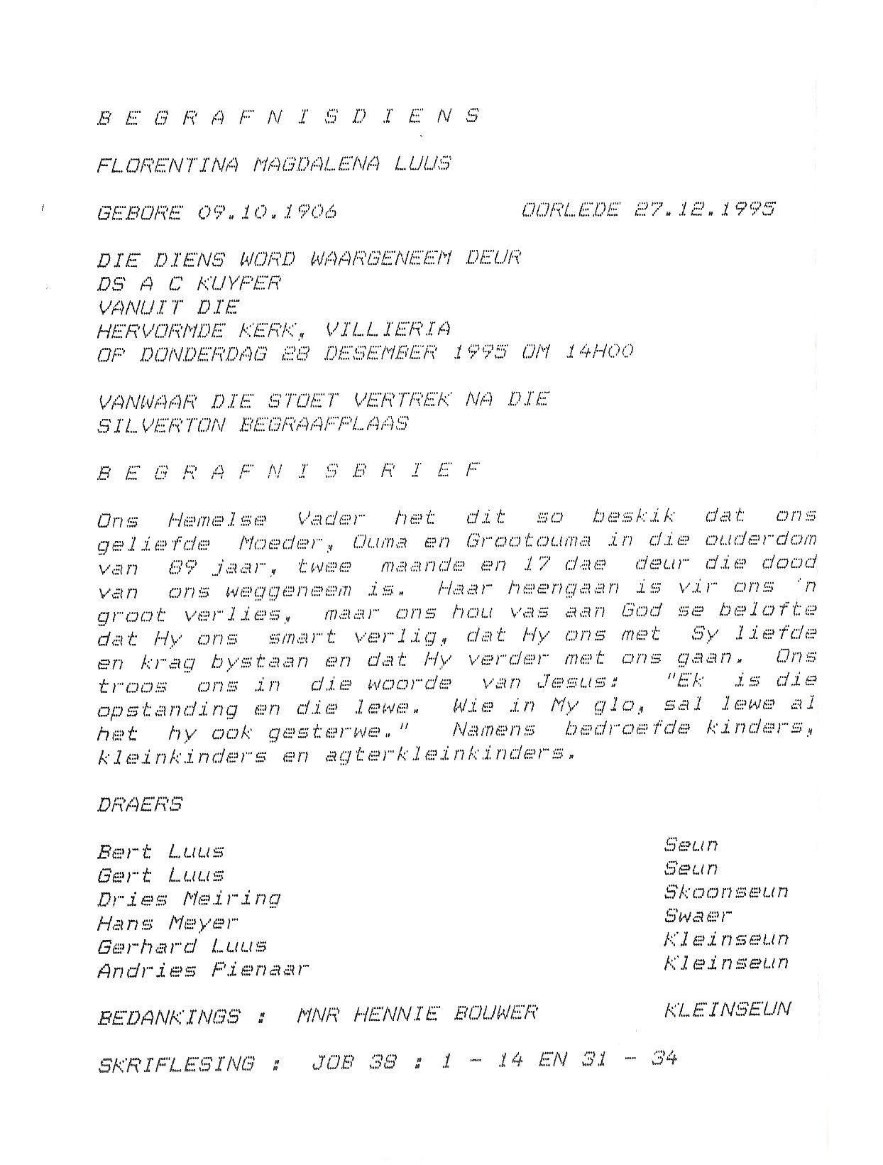Funeral Programs / Begrafnisbriewe