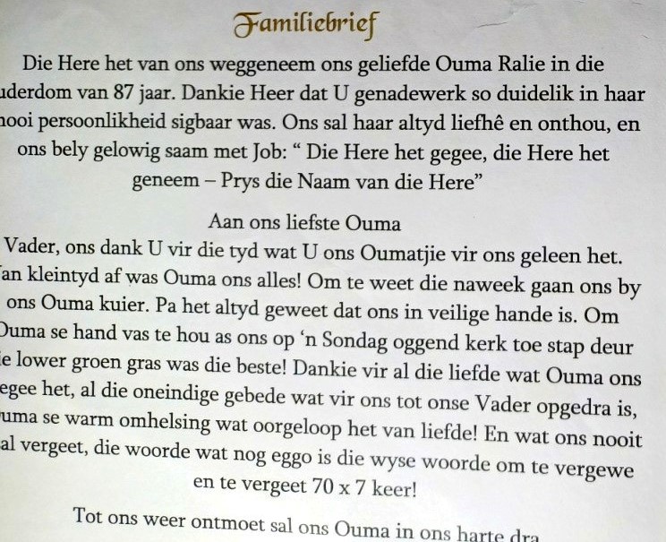 Funeral Programs / Begrafnisbriewe