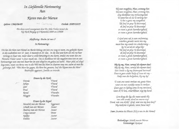 Funeral Programs / Begrafnisbriewe