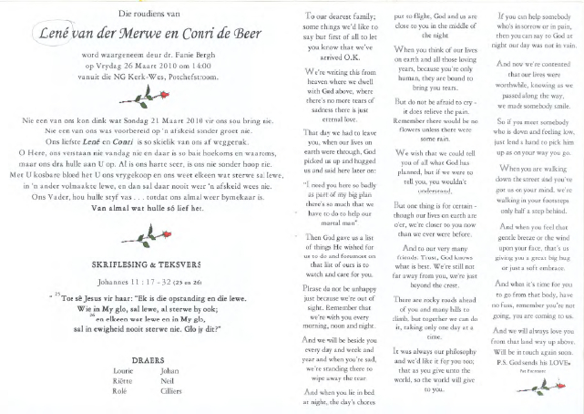 Funeral Programs / Begrafnisbriewe