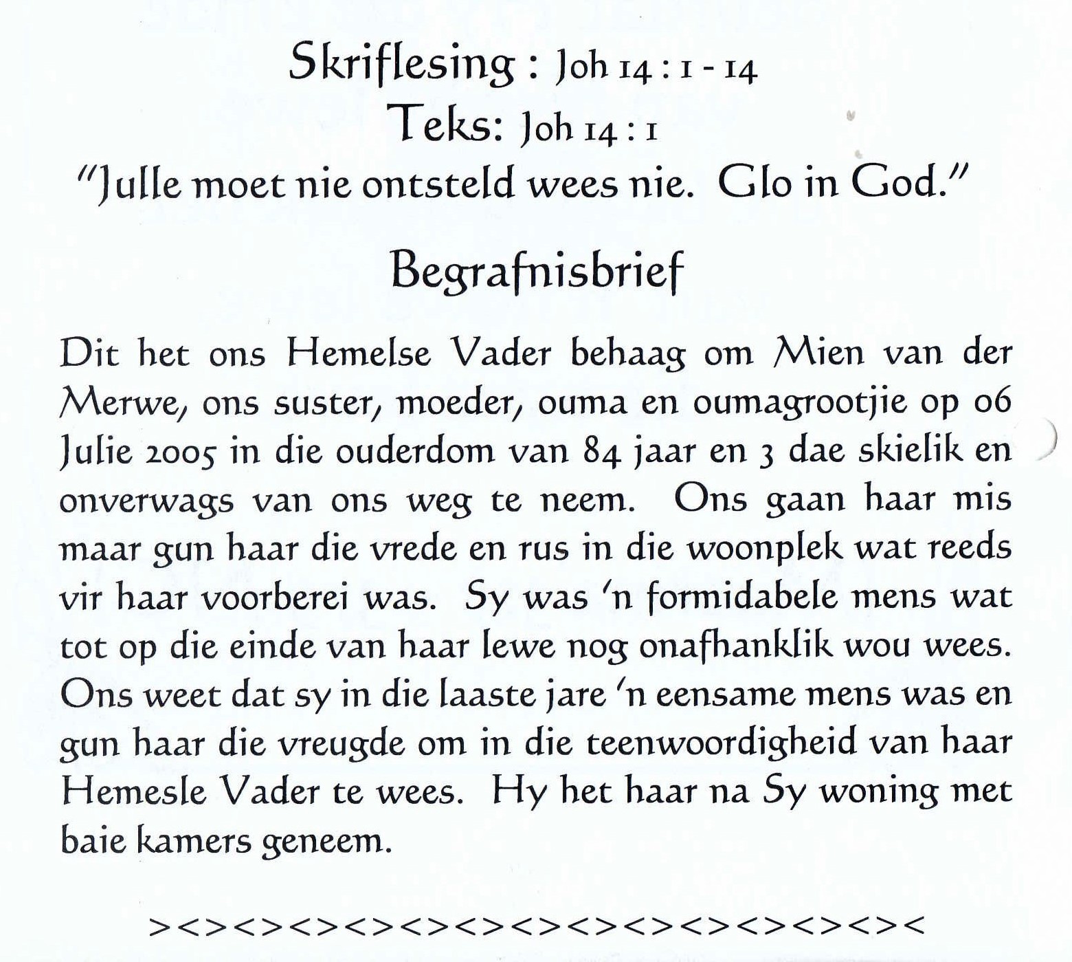 Funeral Programs / Begrafnisbriewe