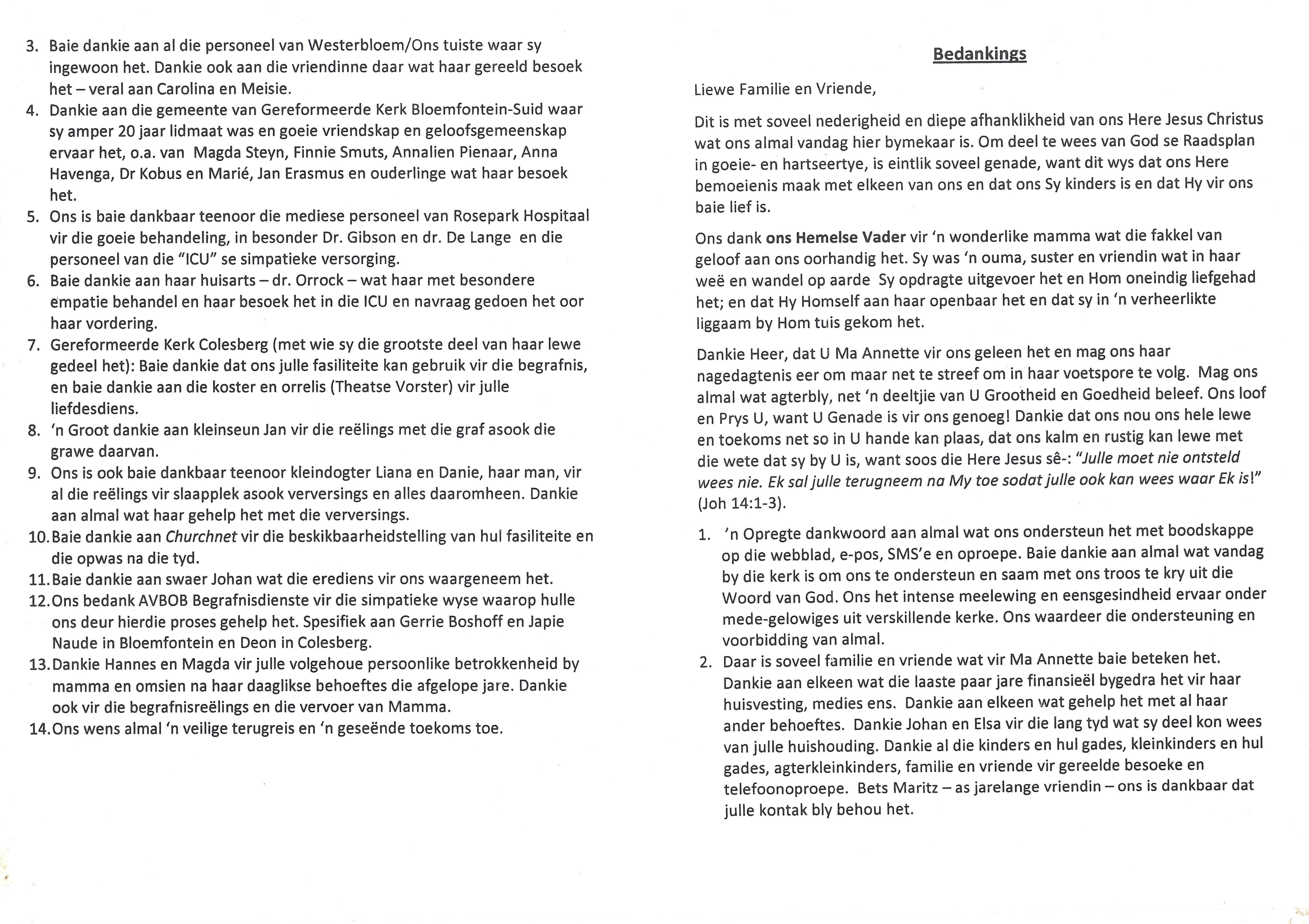 Funeral Programs / Begrafnisbriewe