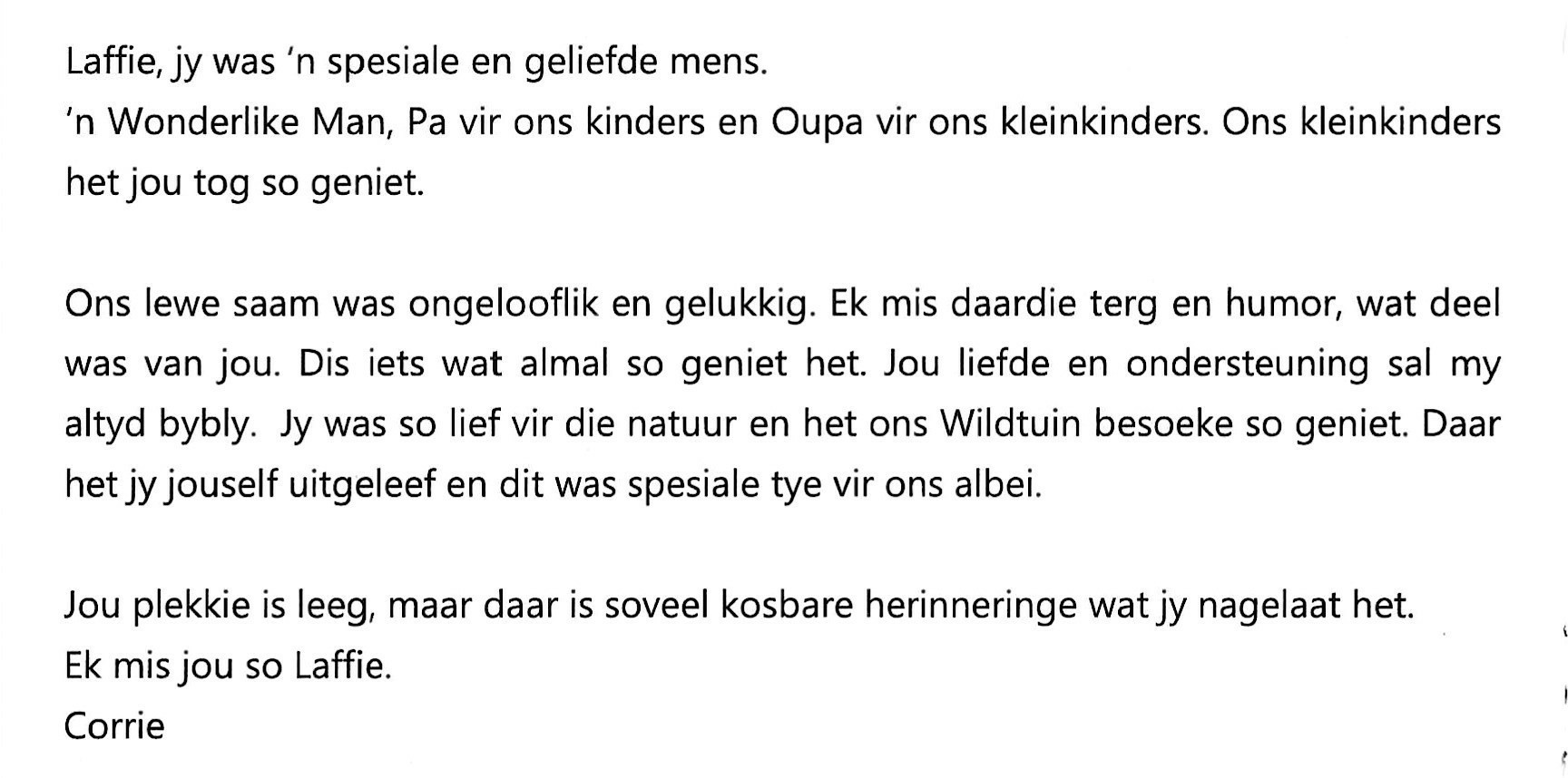 Funeral Programs / Begrafnisbriewe