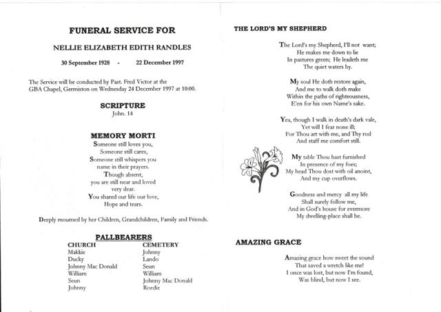 Funeral Programs / Begrafnisbriewe