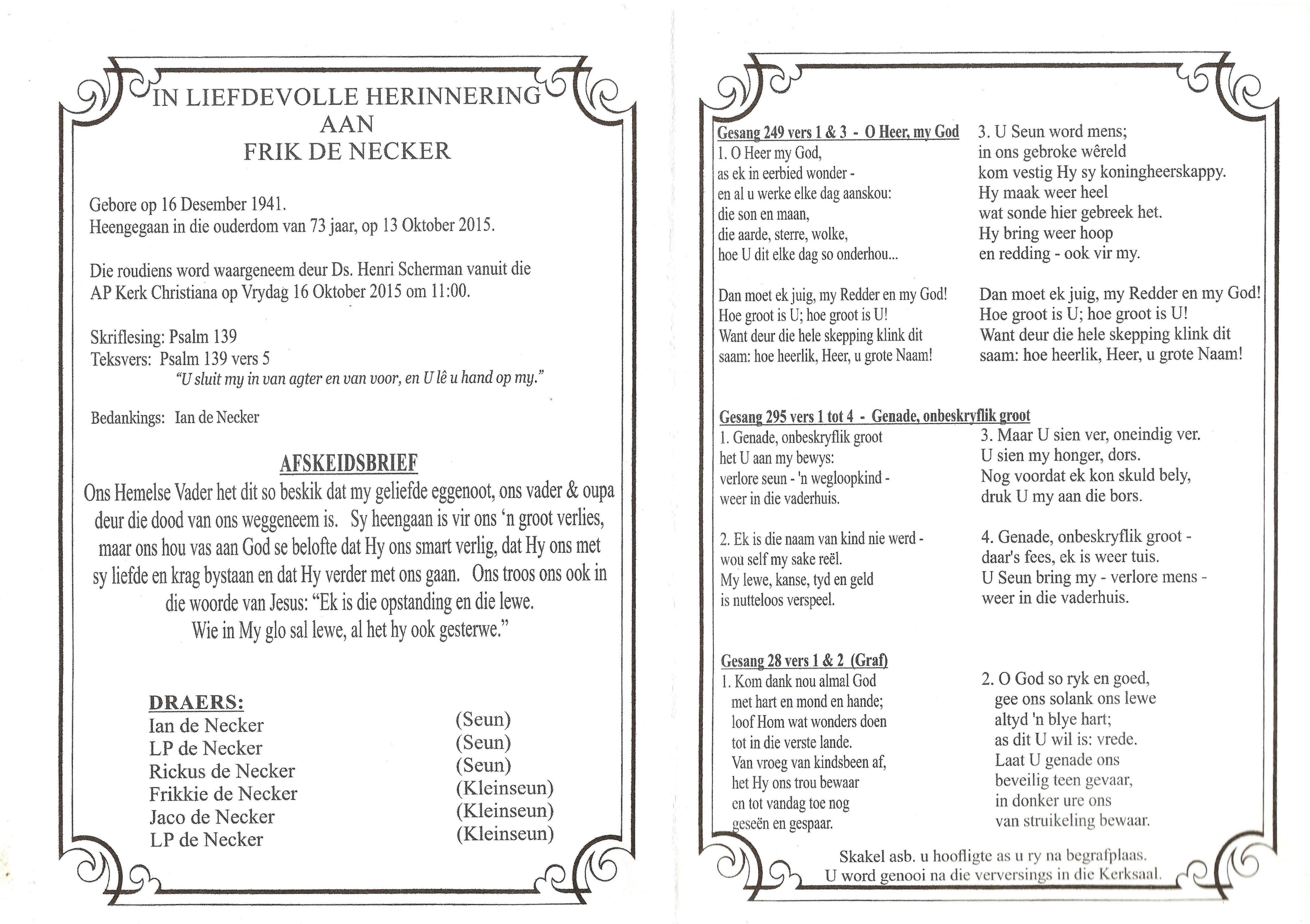 Funeral Programs / Begrafnisbriewe