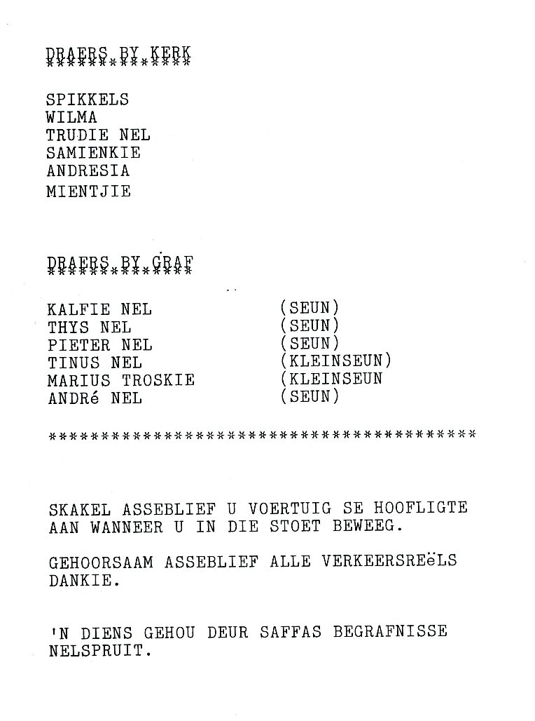 Funeral Programs / Begrafnisbriewe