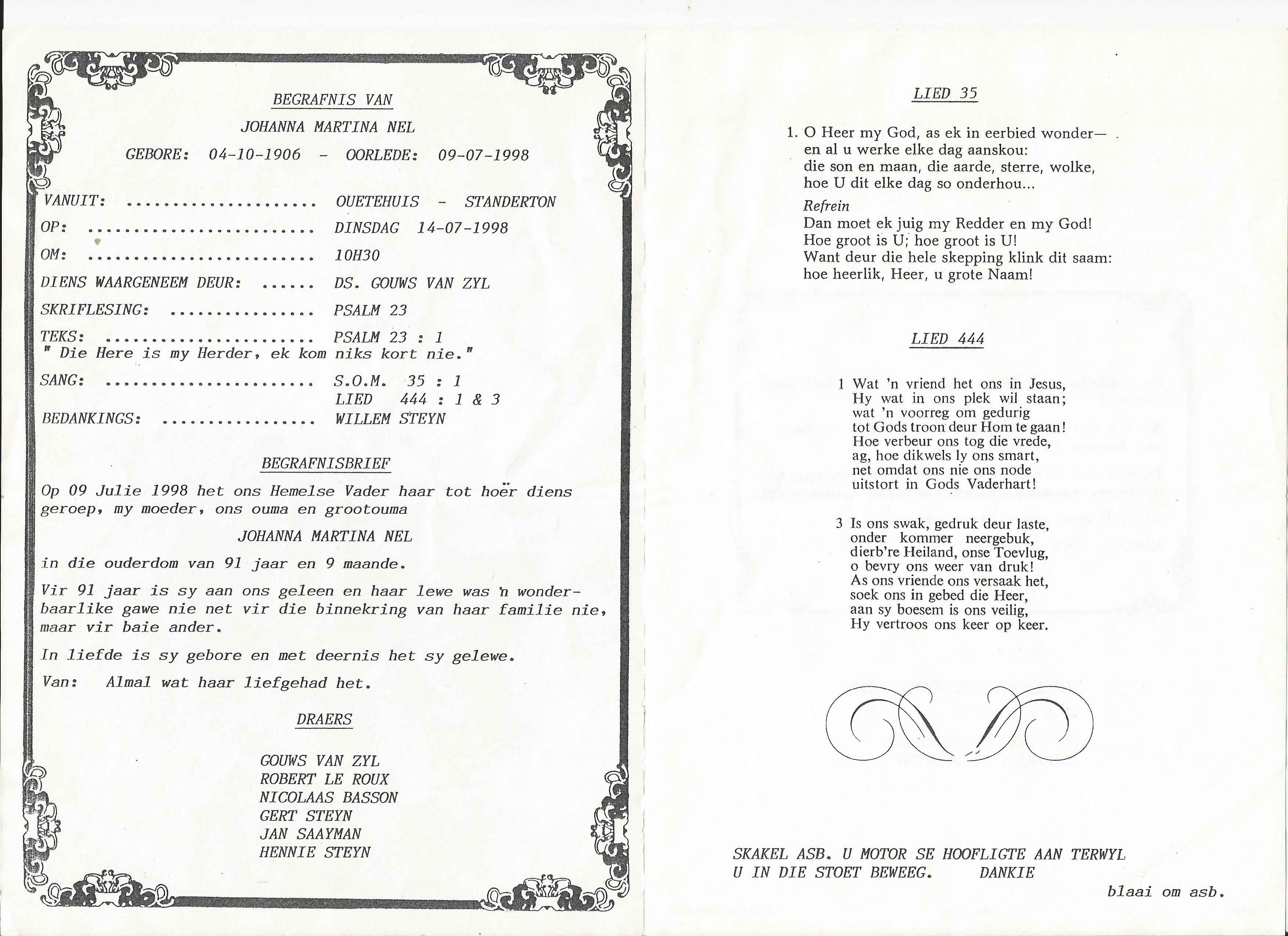 Funeral Programs / Begrafnisbriewe