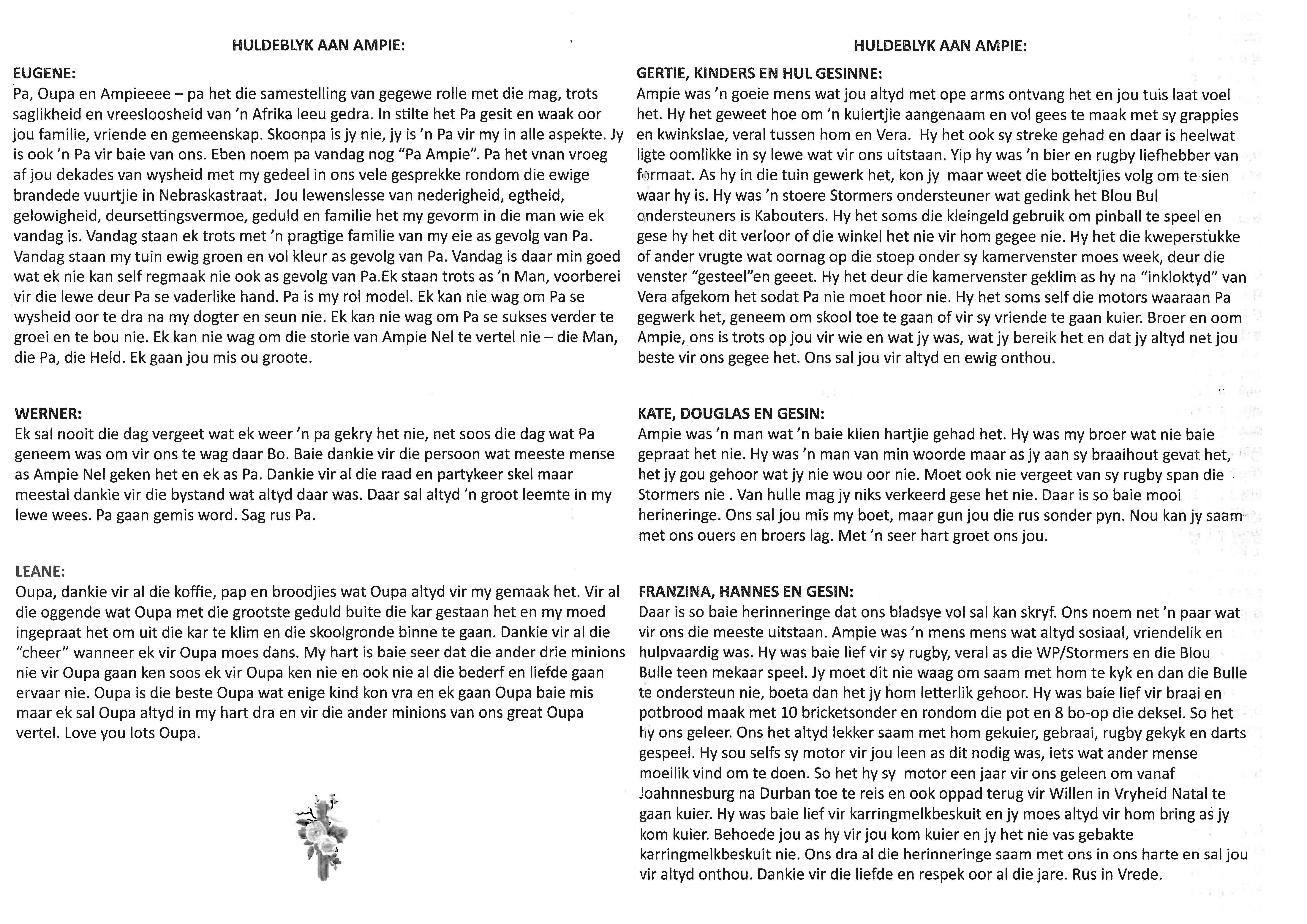 Funeral Programs / Begrafnisbriewe