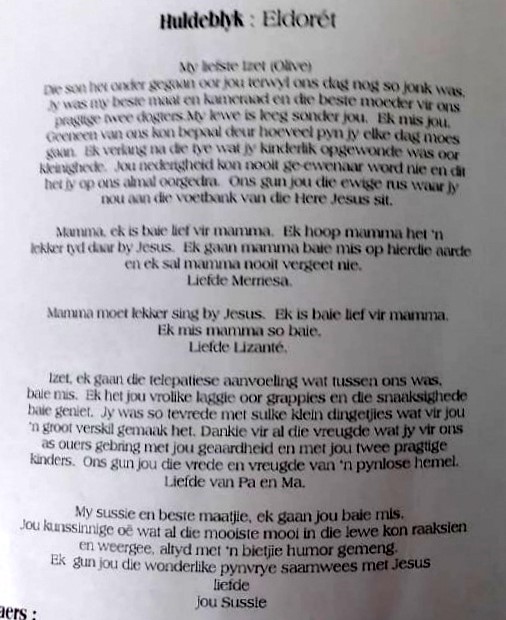Funeral Programs / Begrafnisbriewe