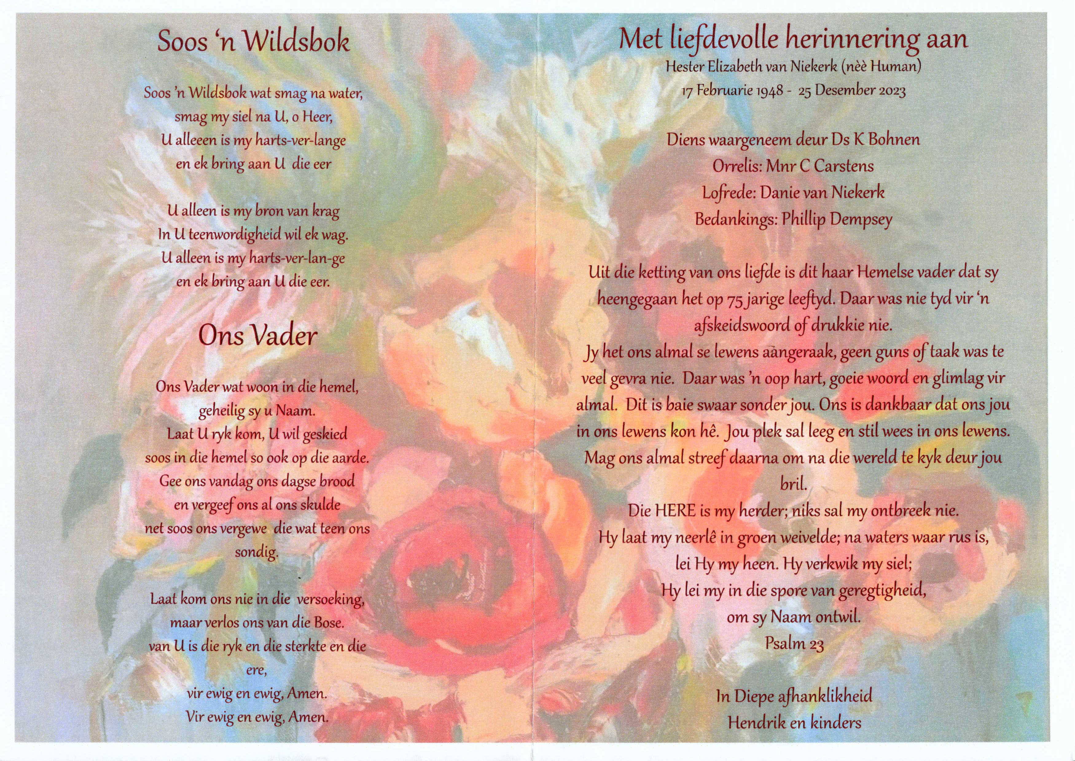 NIEKERK-VAN-Hester-Elizabeth-Nn-Esther-nee-Human-1948-2023-F