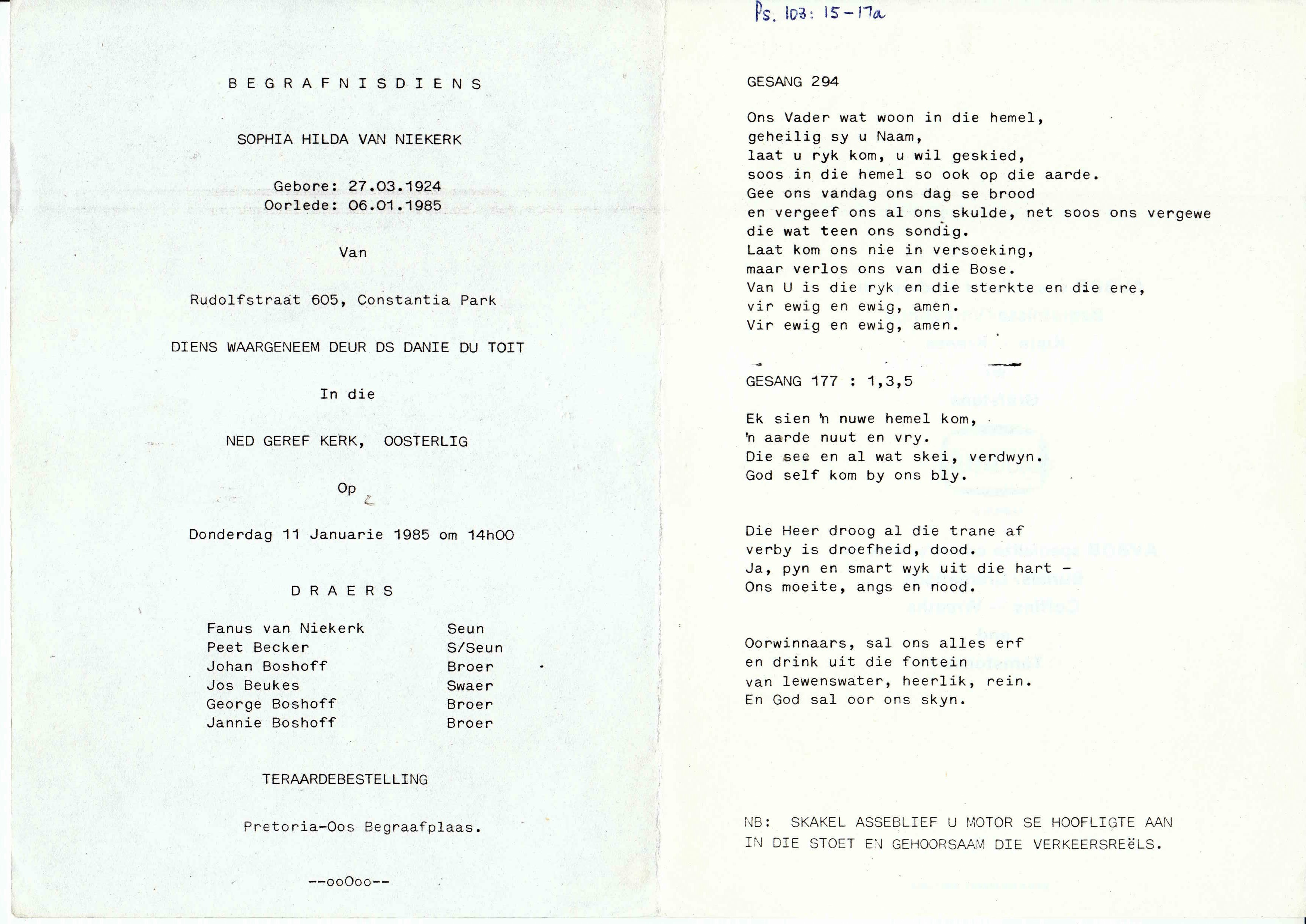 NIEKERK-VAN-Sophia-Hilda-1924-1985-F