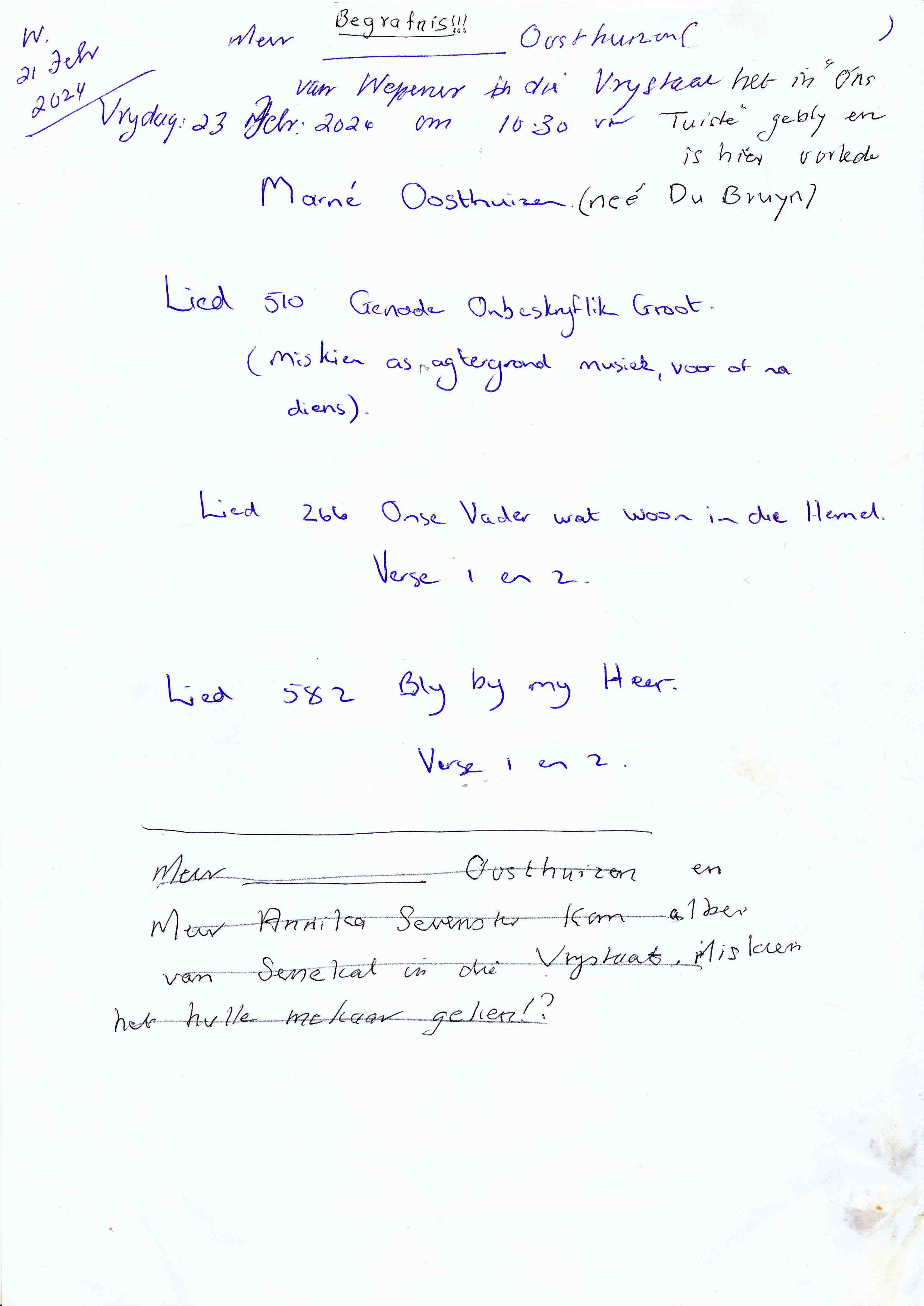 Funeral Programs / Begrafnisbriewe