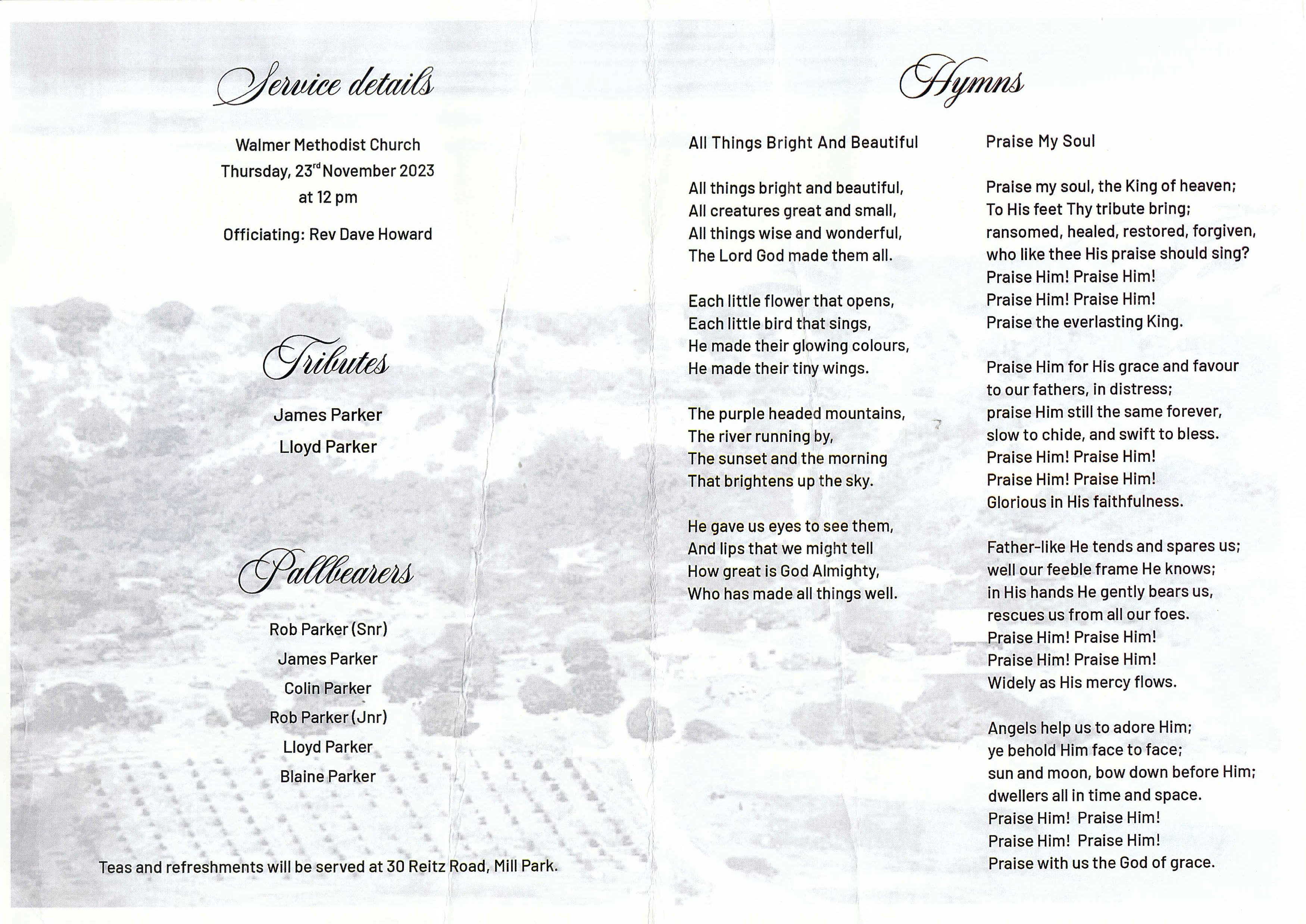 Funeral Programs / Begrafnisbriewe