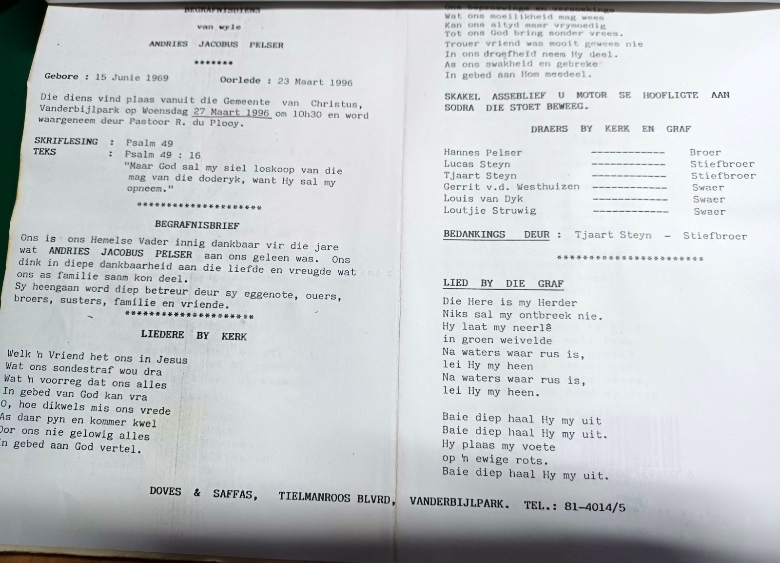 Funeral Programs / Begrafnisbriewe