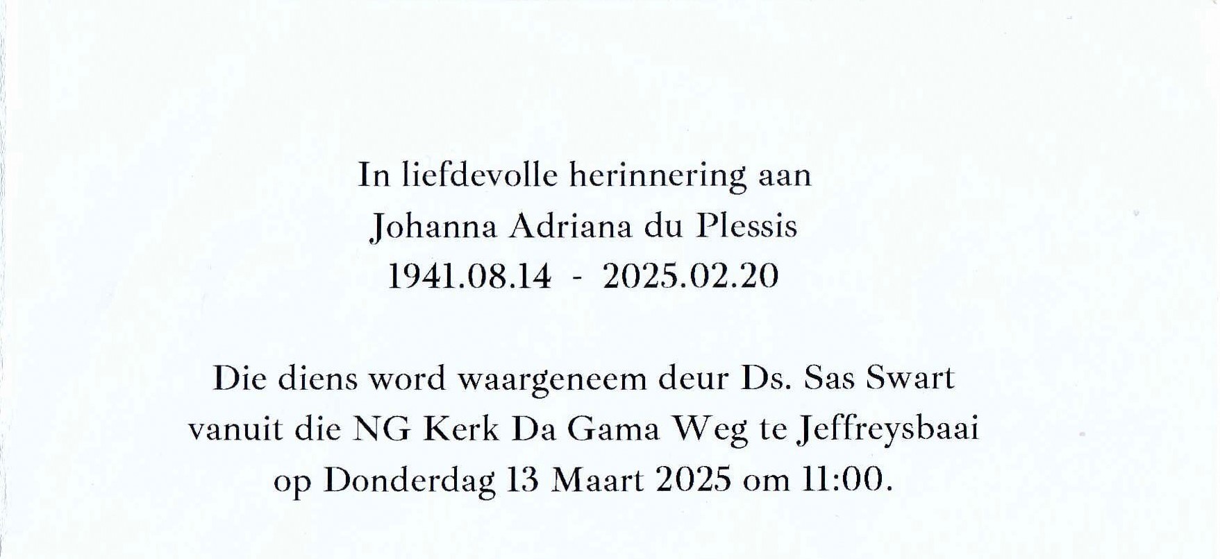 PLESSIS-DU-Johanna-Adriana-Nn-Audrey-1941-2025-F
