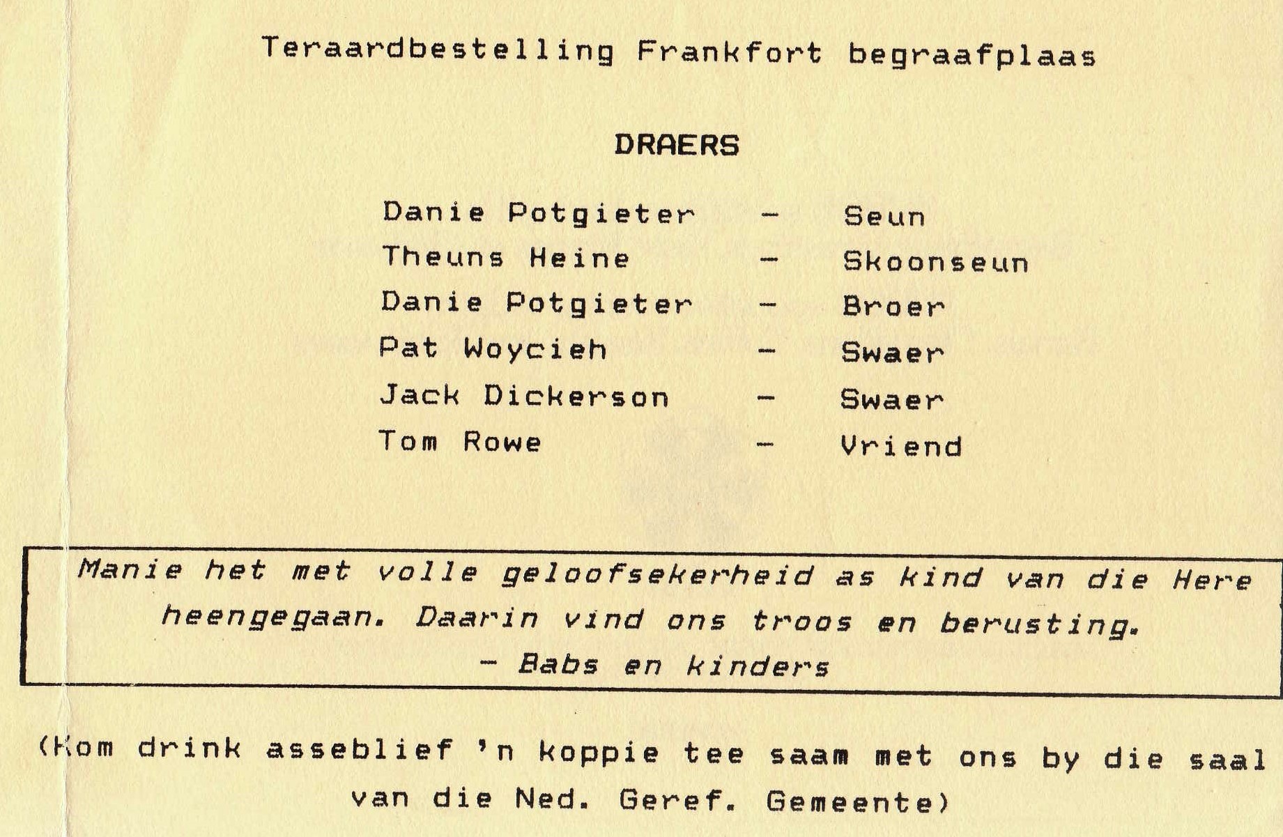 Funeral Programs / Begrafnisbriewe