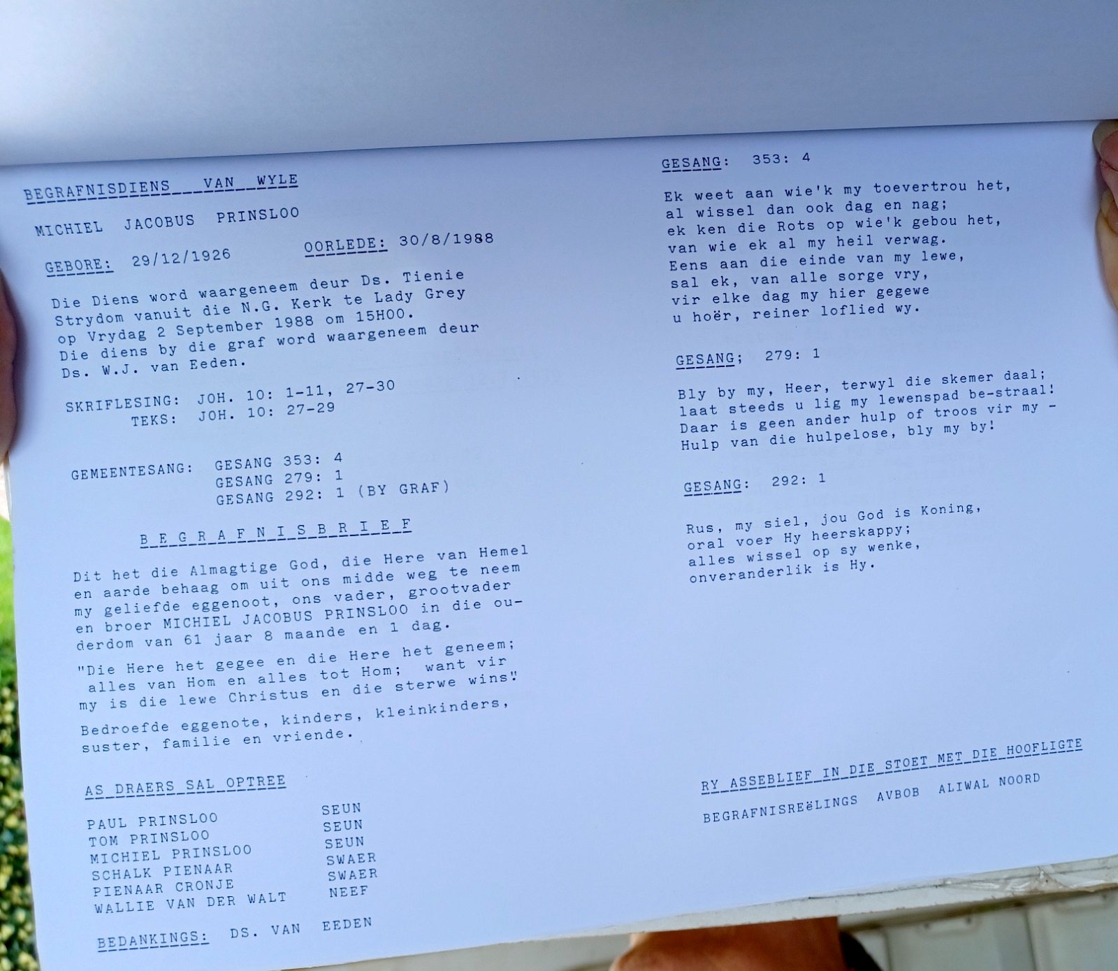 Funeral Programs / Begrafnisbriewe