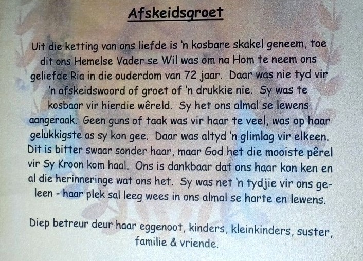 Funeral Programs / Begrafnisbriewe