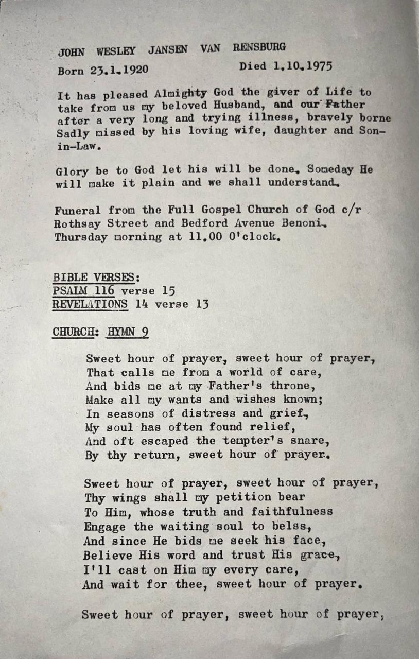 Funeral Programs / Begrafnisbriewe