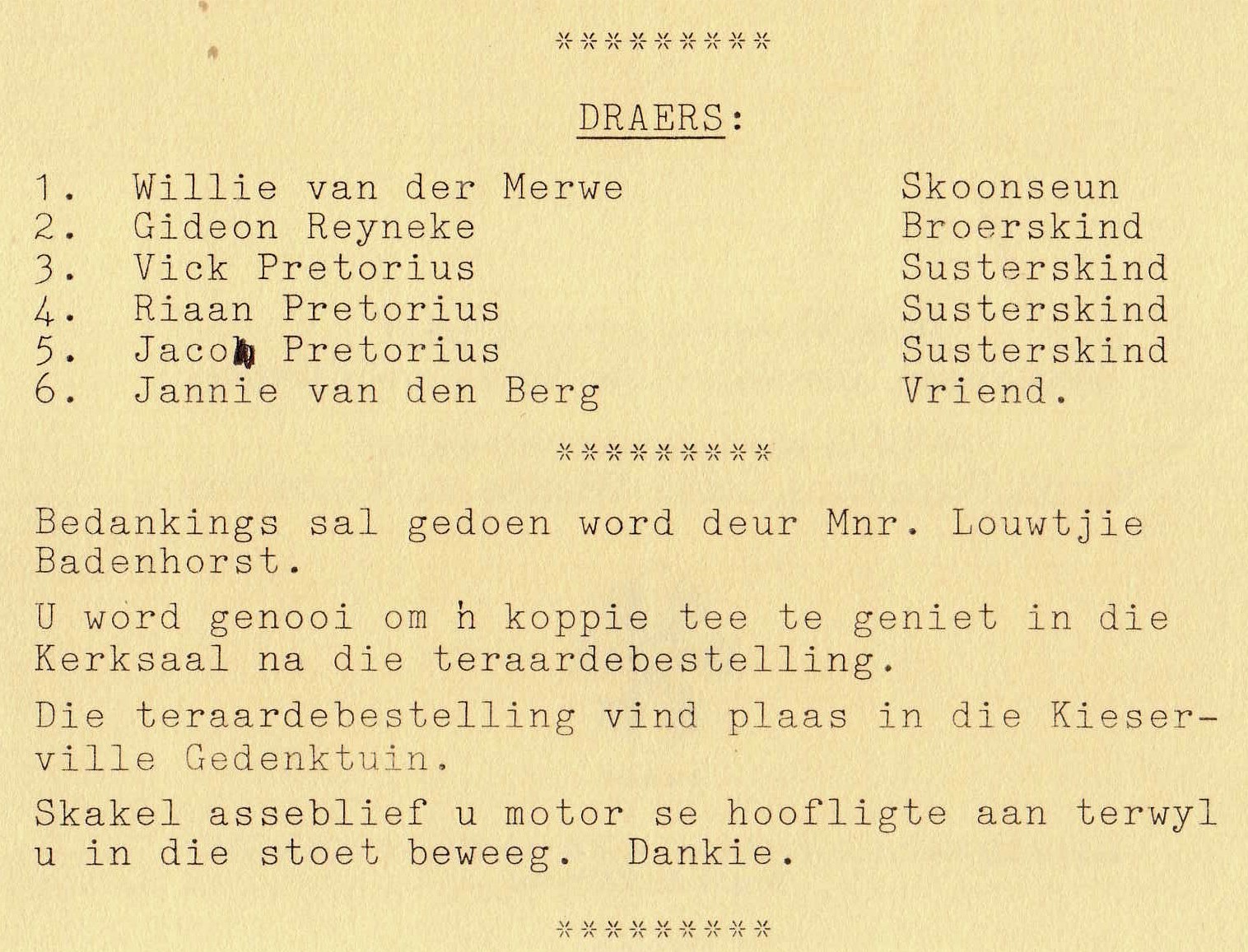 Funeral Programs / Begrafnisbriewe