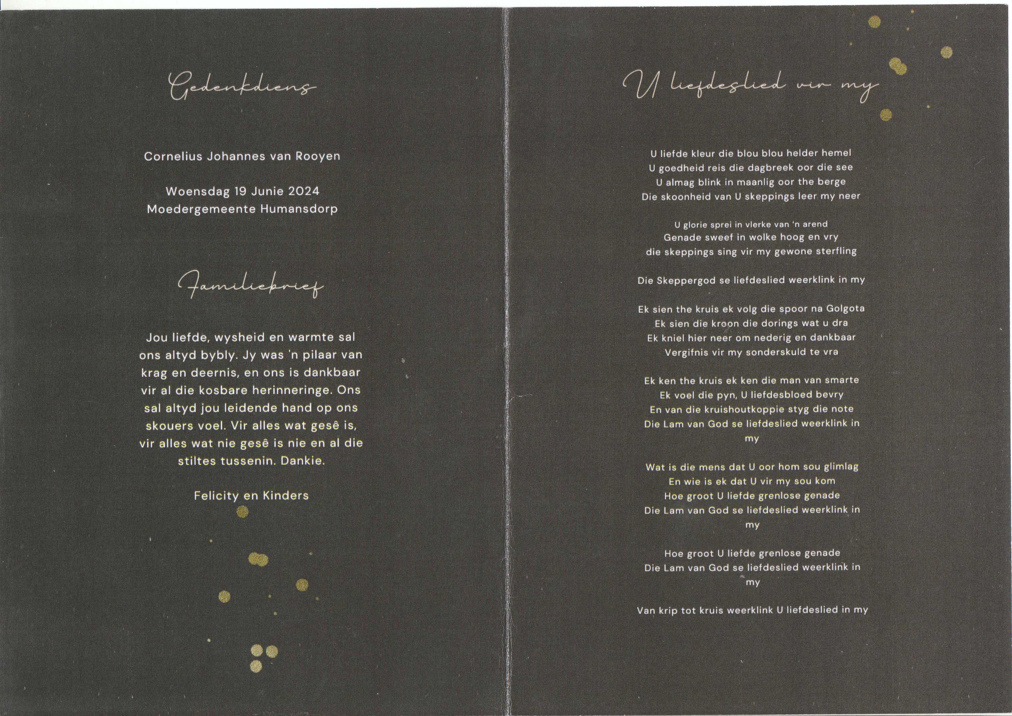 Funeral Programs / Begrafnisbriewe
