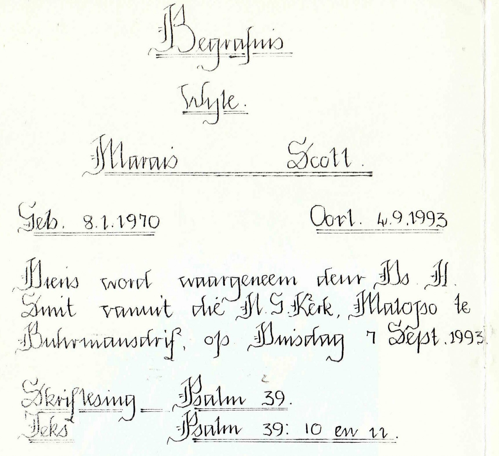 Funeral Programs / Begrafnisbriewe