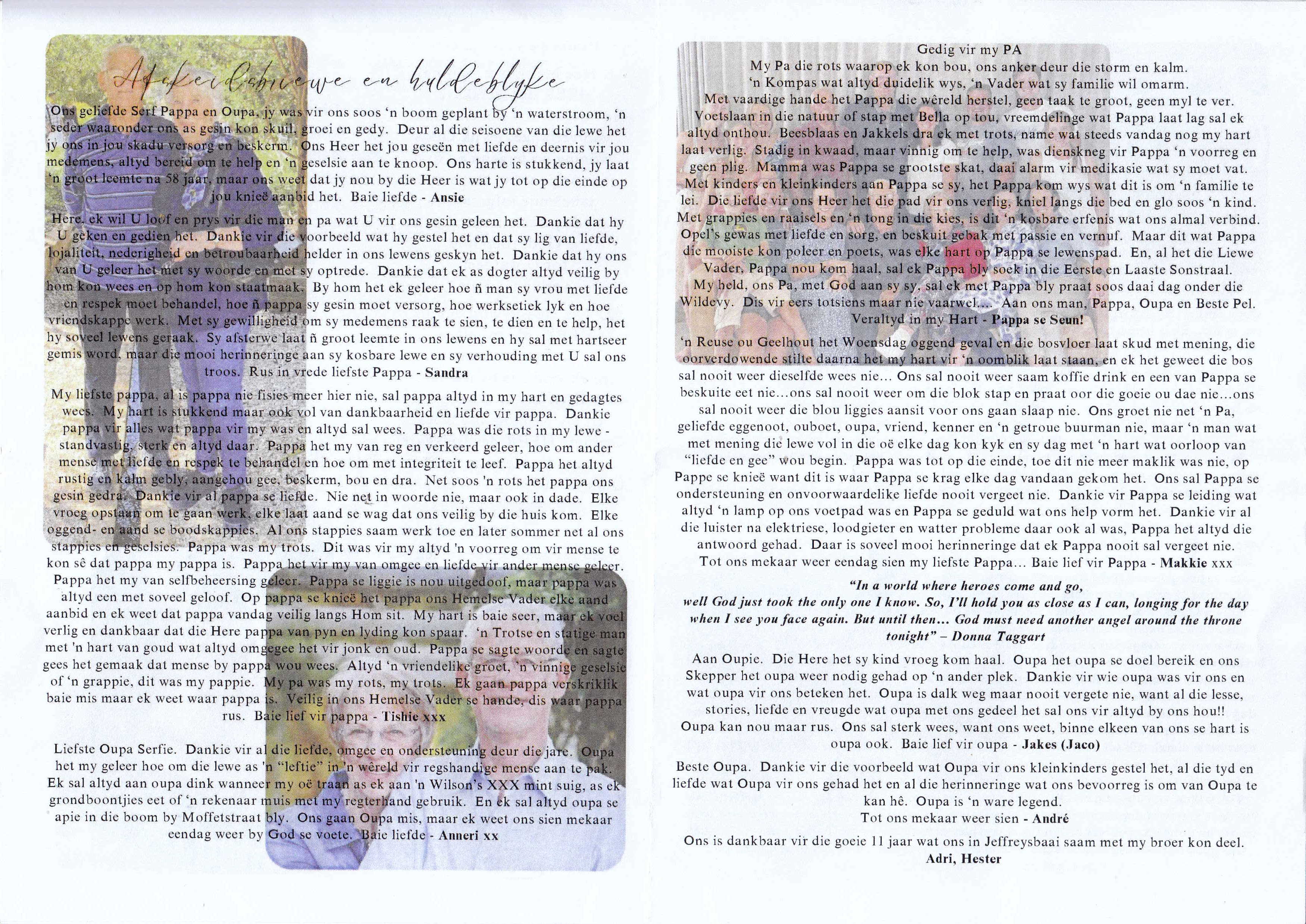 Funeral Programs / Begrafnisbriewe