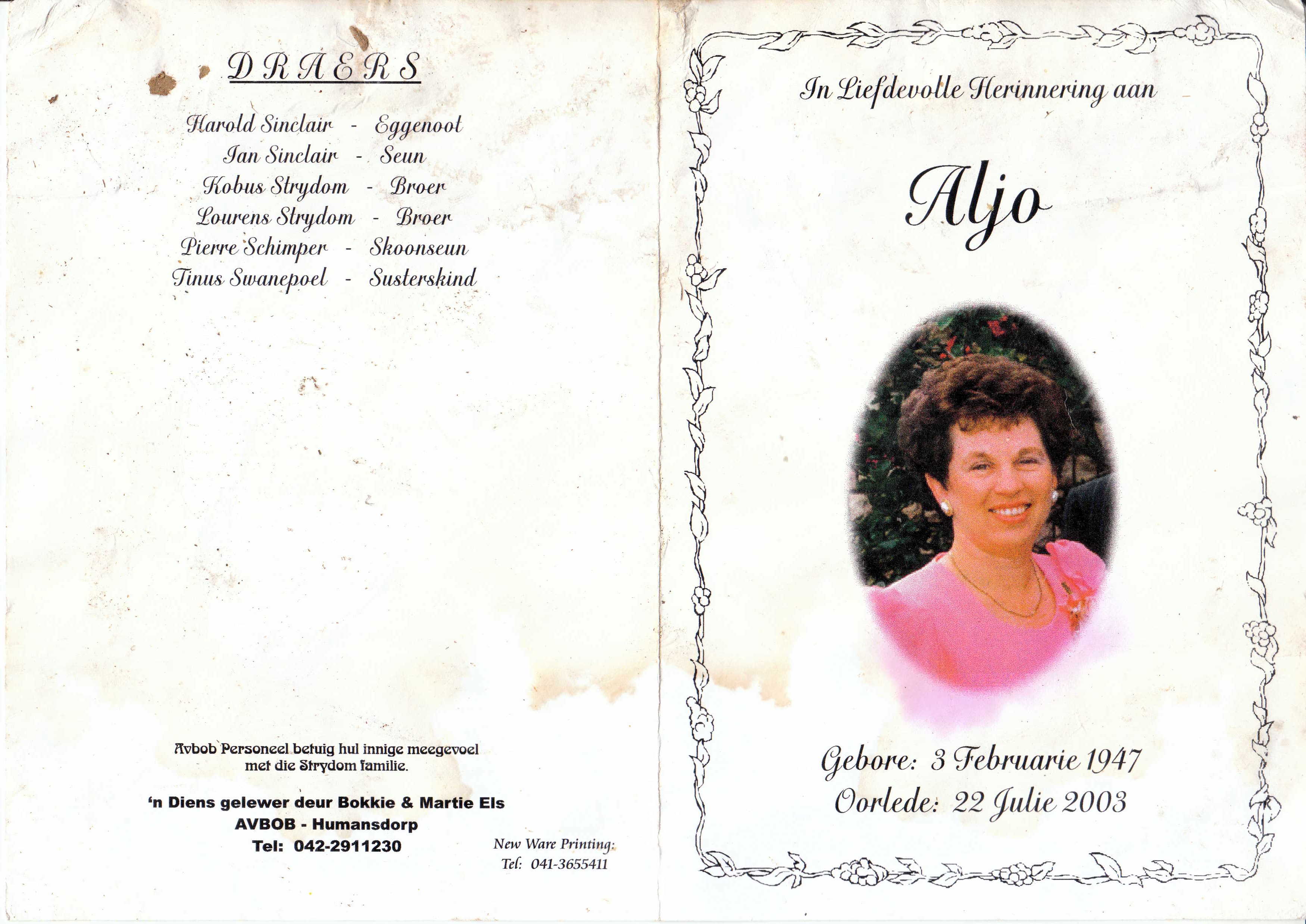 SINCLAIR-Aletta-Johanna-Nn-Aljo-nee-Strydom-1947-2003-F