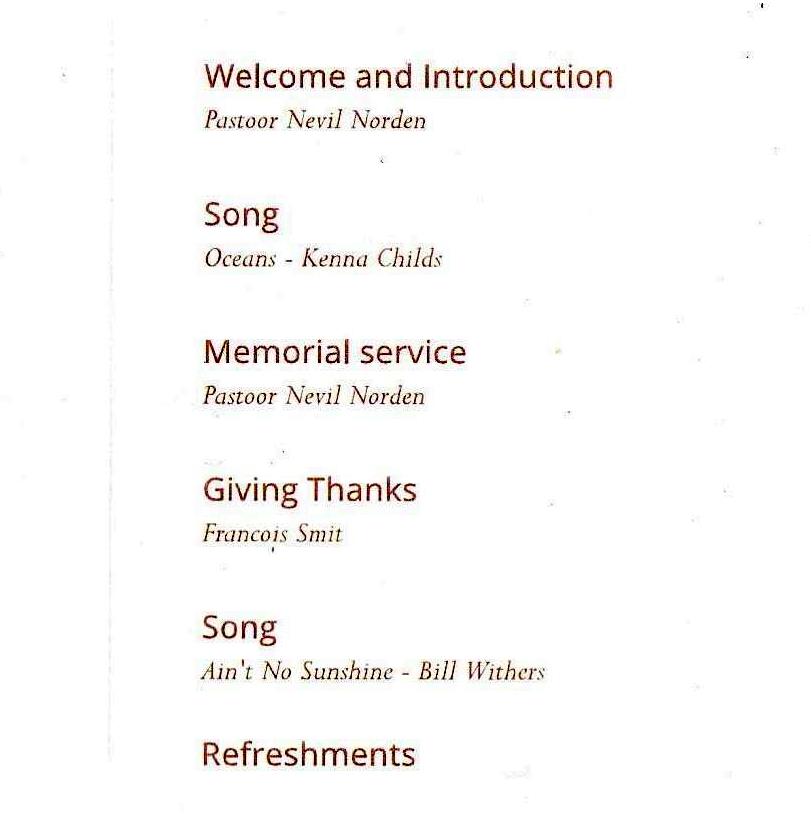 Funeral Programs / Begrafnisbriewe
