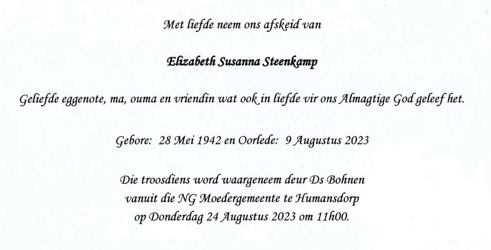 STEENKAMP-Elizabeth-Susanna-Nn-Bettie-1942-2023-F