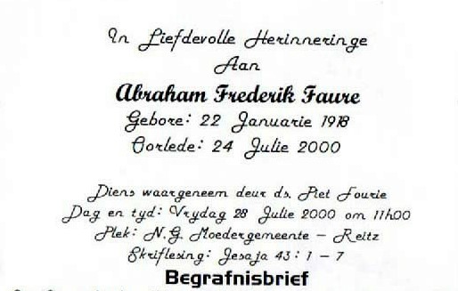 Funeral Programs / Begrafnisbriewe
