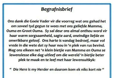 Funeral Programs / Begrafnisbriewe