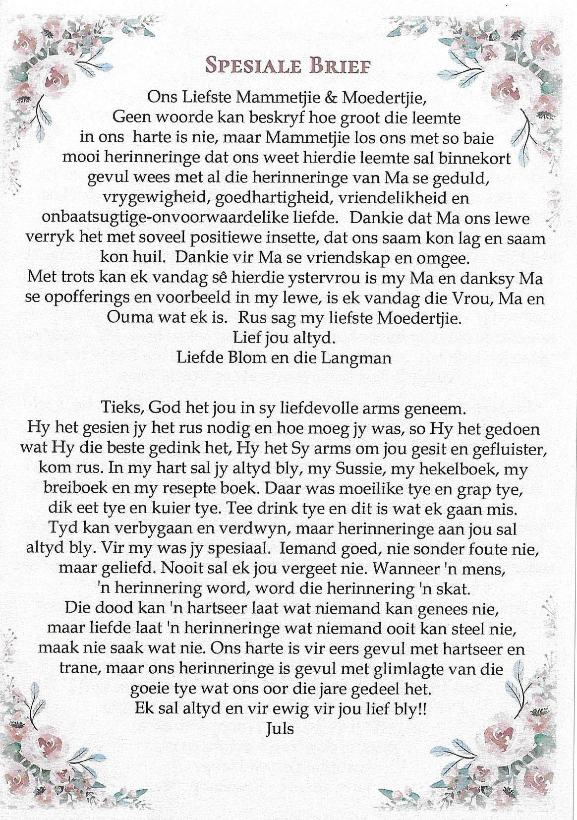 Funeral Programs / Begrafnisbriewe