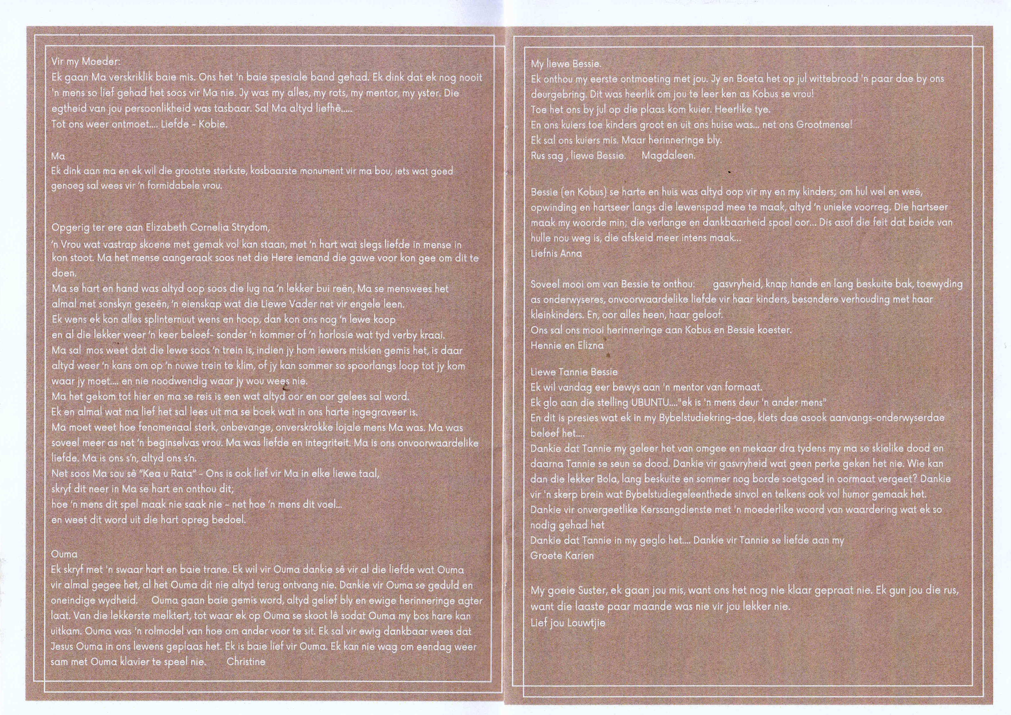 Funeral Programs / Begrafnisbriewe