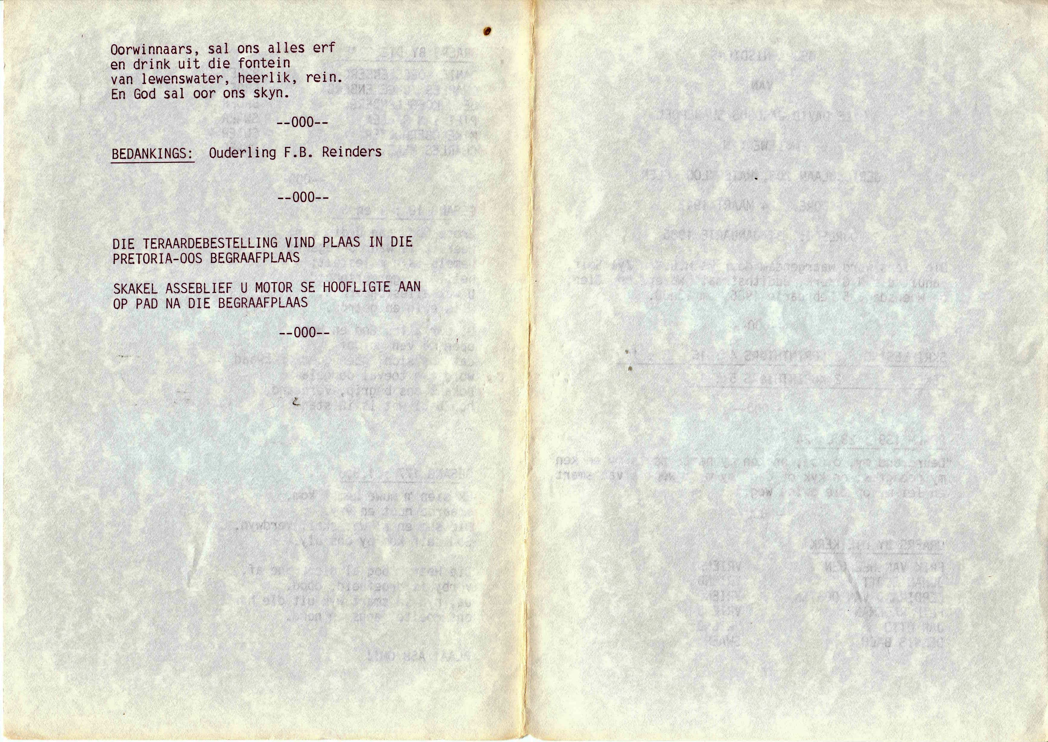 Funeral Programs / Begrafnisbriewe
