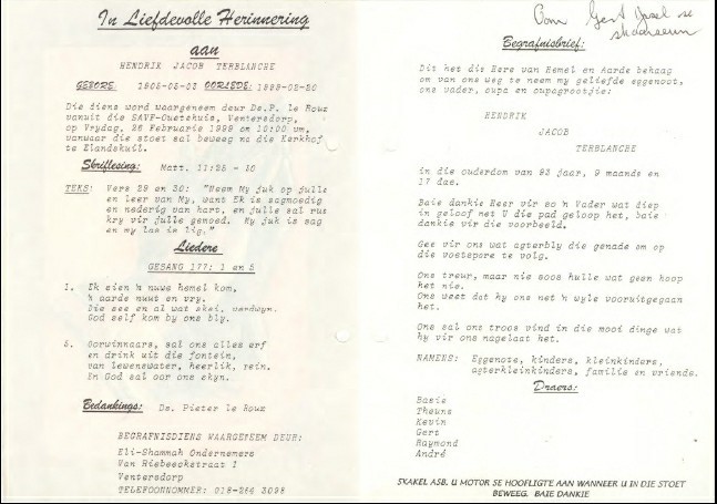 Funeral Programs / Begrafnisbriewe