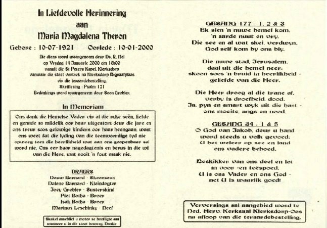 Funeral Programs / Begrafnisbriewe