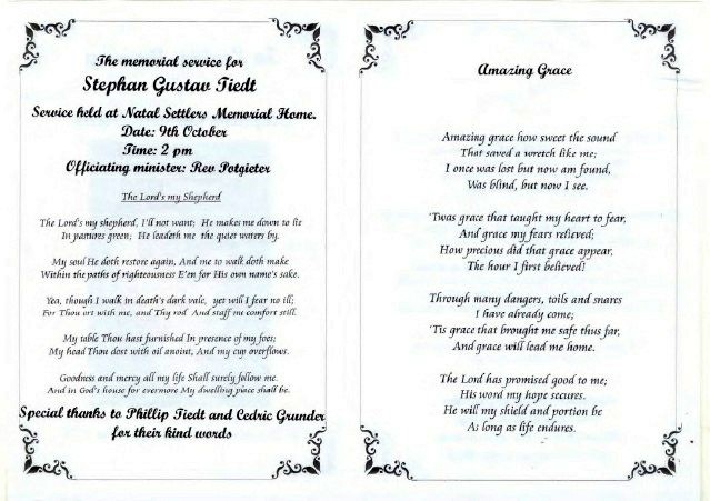 Funeral Programs / Begrafnisbriewe